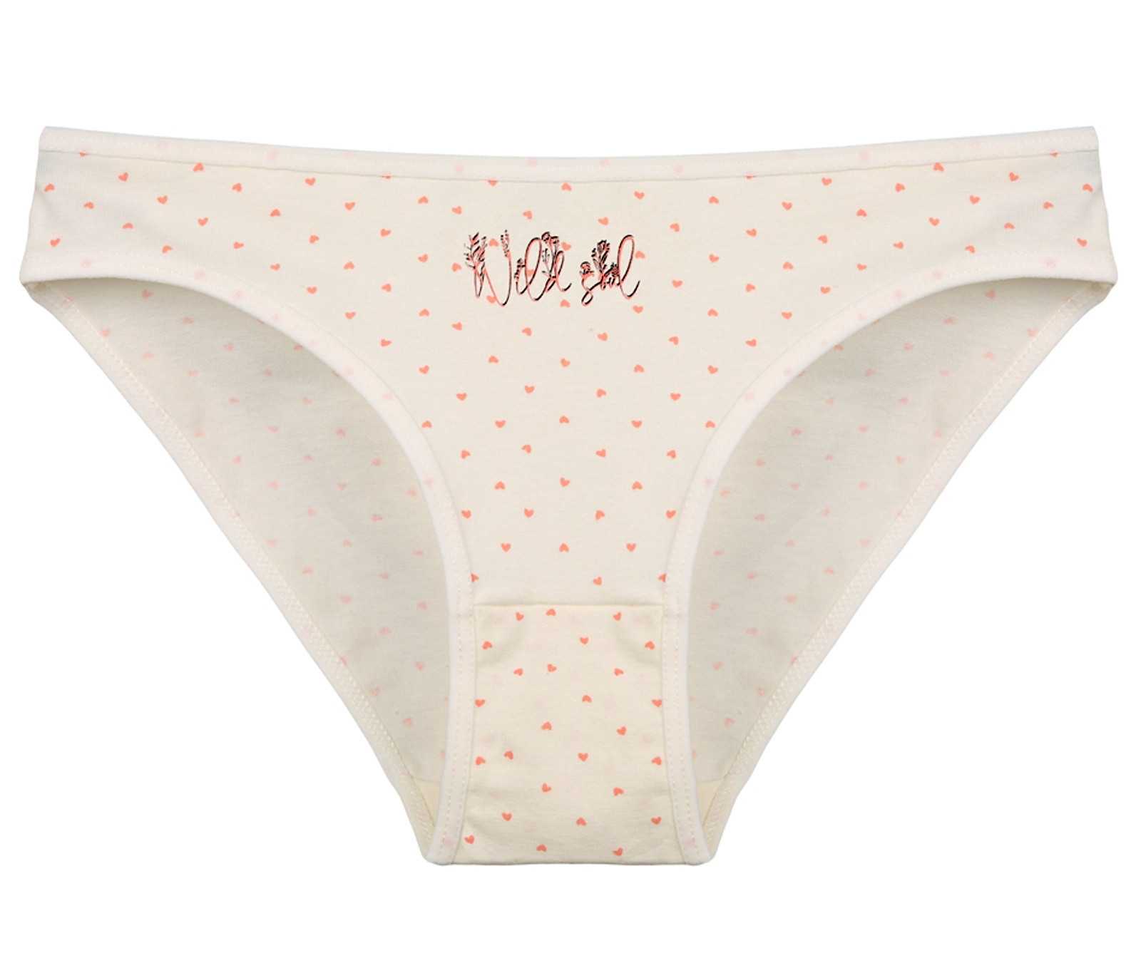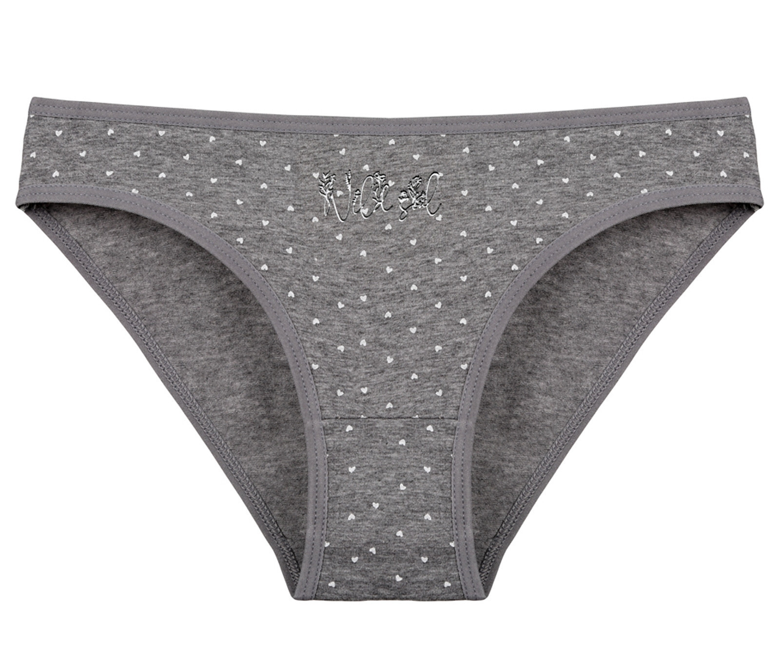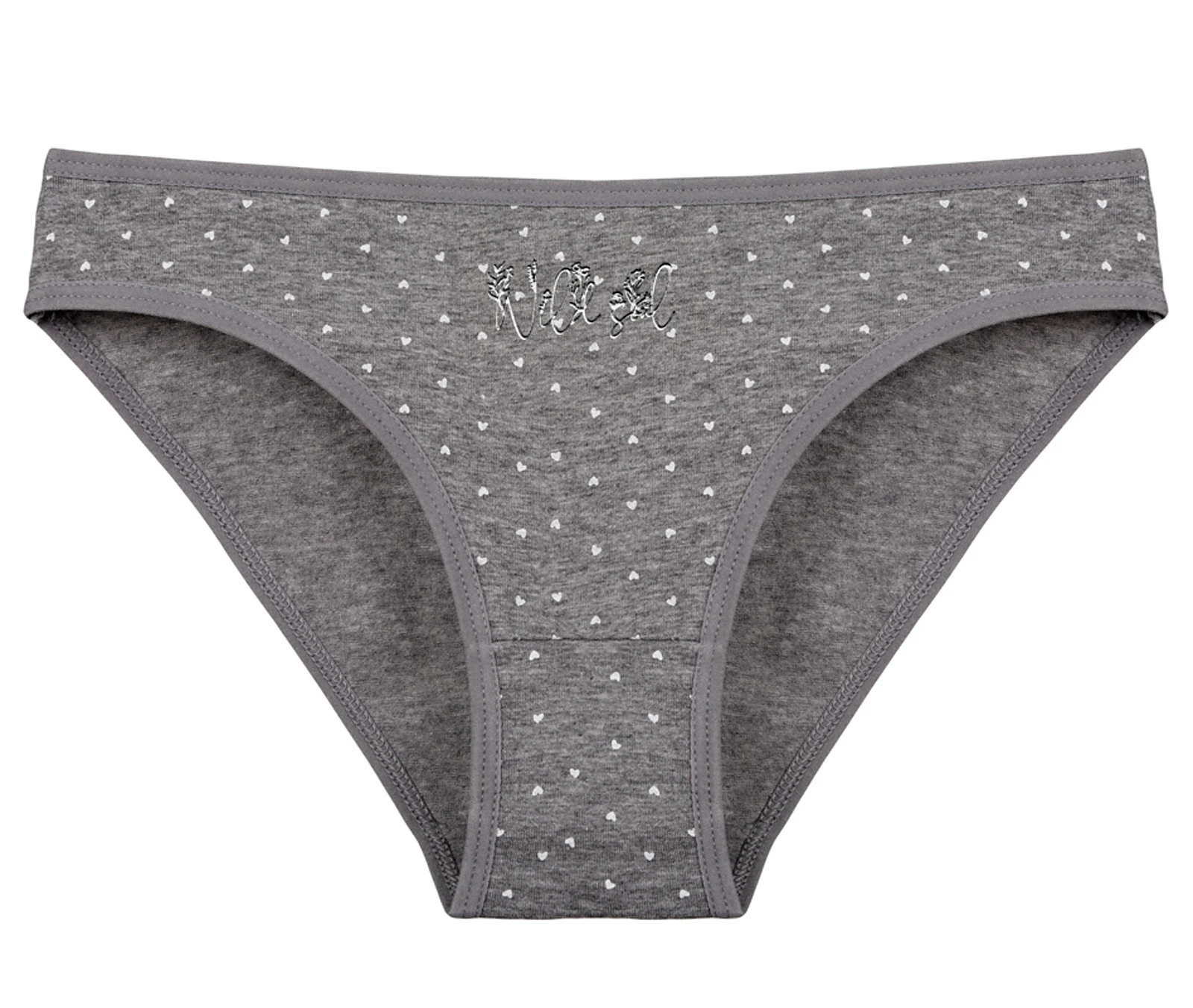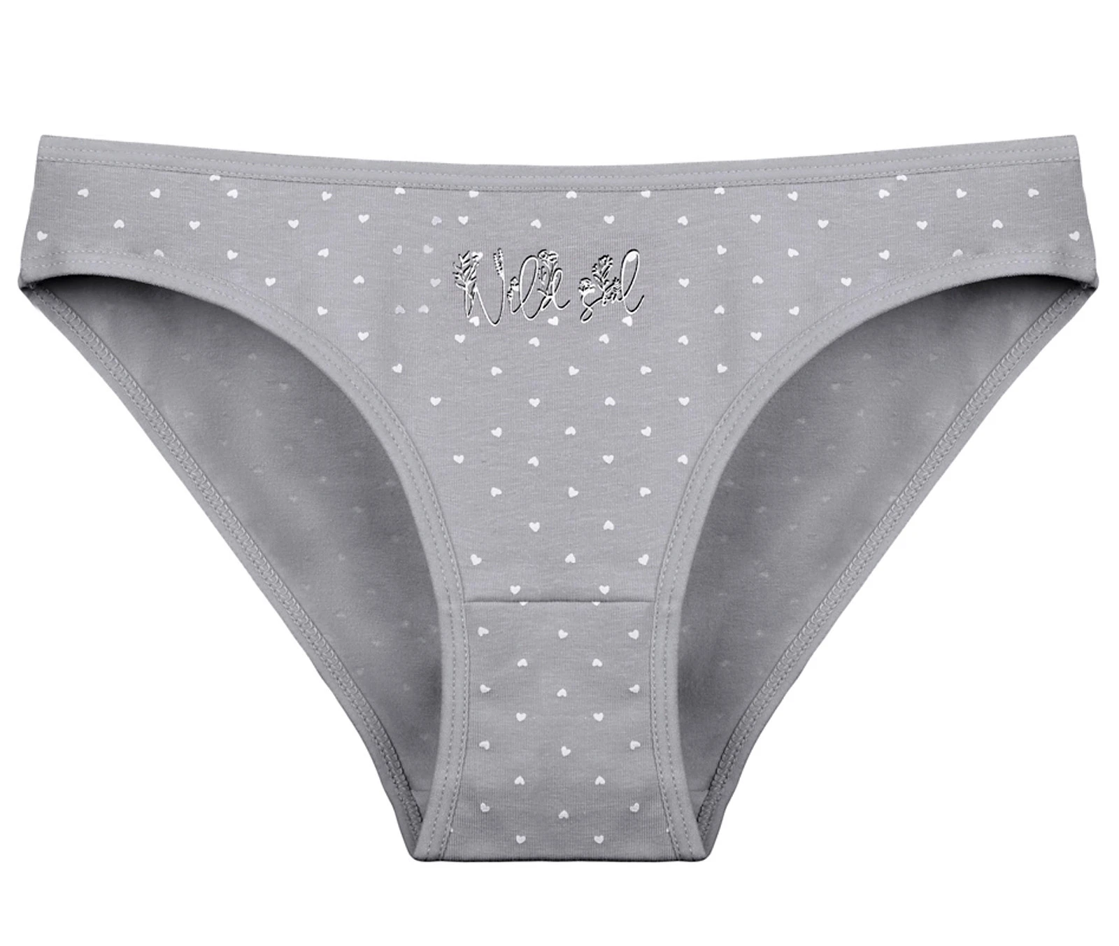 Dámské kalhotky Ava. Slušivé klasické kalhotky jsou pohodlným typem spodního prádla pro všechny příležitosti. Jsou zdobené drobnými srdíčky a nápisem. Obzvláště oceníte materiálové složení - 95% bavlna a 5% elasten. Použitý materiál je příjemný a poddajný na dotek.