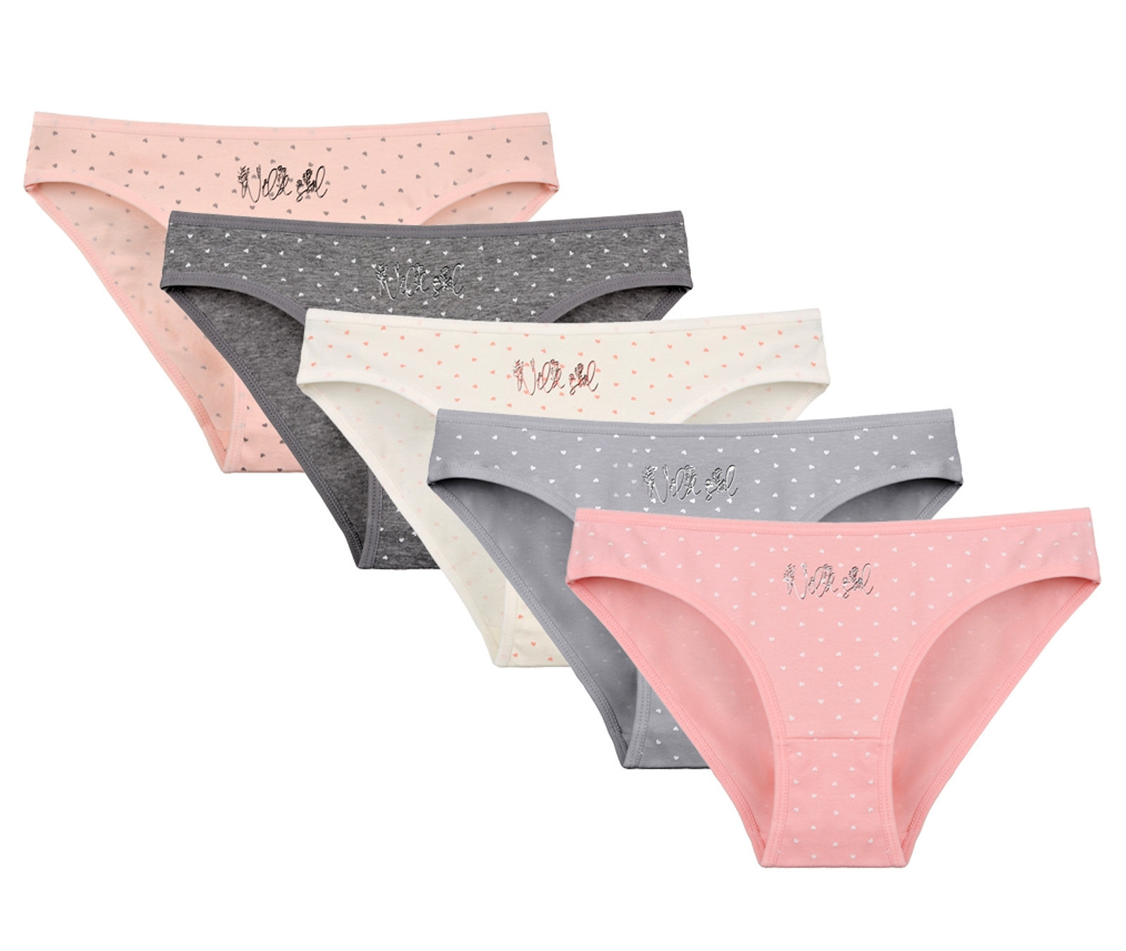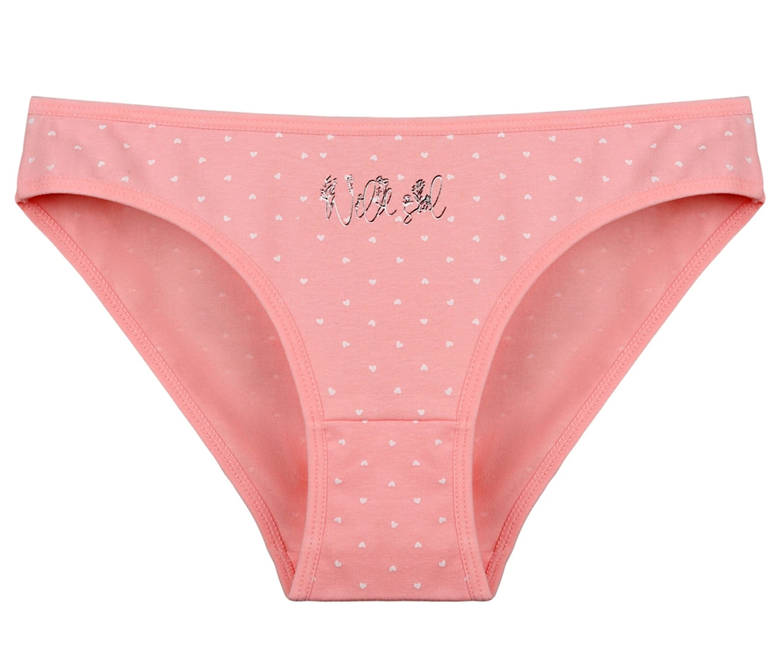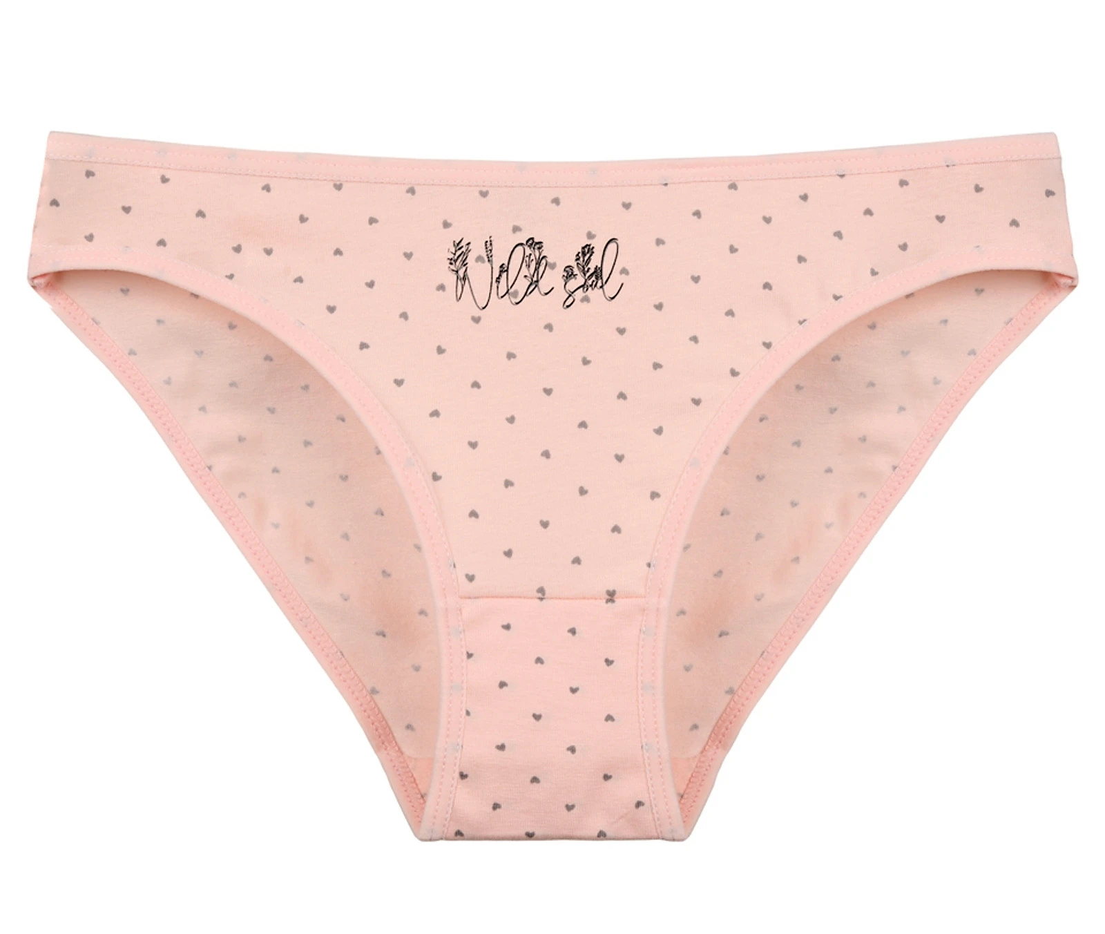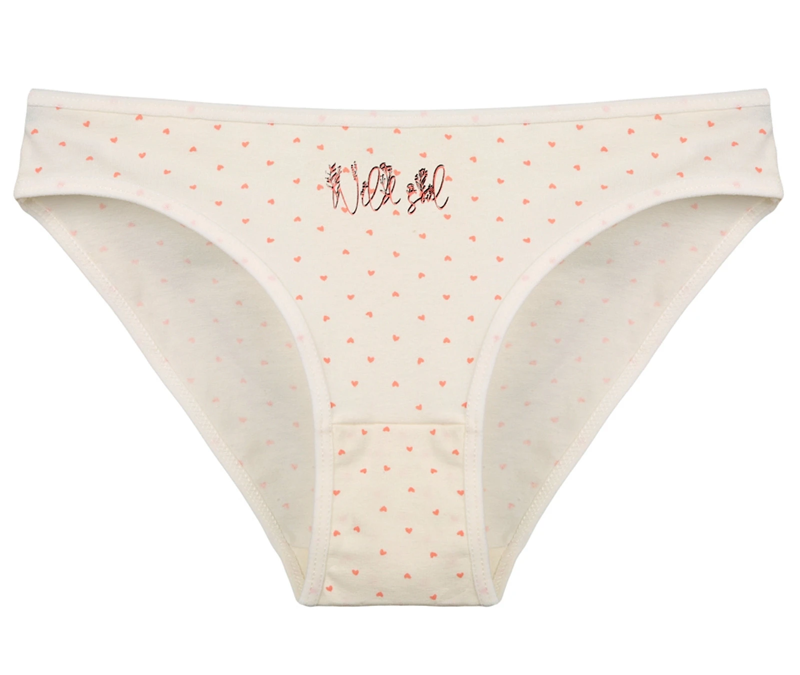 Dámské kalhotky Ava. Slušivé klasické kalhotky jsou pohodlným typem spodního prádla pro všechny příležitosti. Jsou zdobené drobnými srdíčky a nápisem. Obzvláště oceníte materiálové složení - 95% bavlna a 5% elasten. Použitý materiál je příjemný a poddajný na dotek.