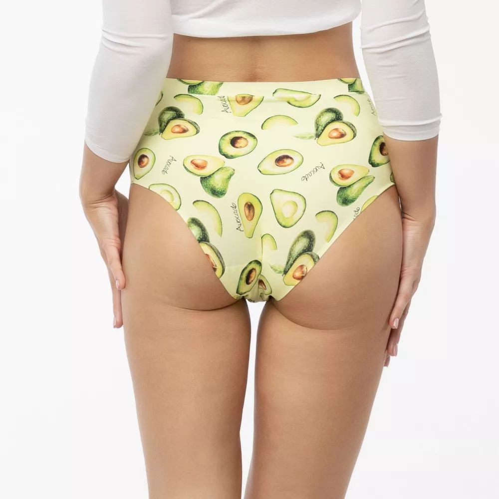 Dámské kalhotky Avocado simple maxi JULIMEX - zelená barva - barevný potisk - střižené laserem - bezešvé - široké boky