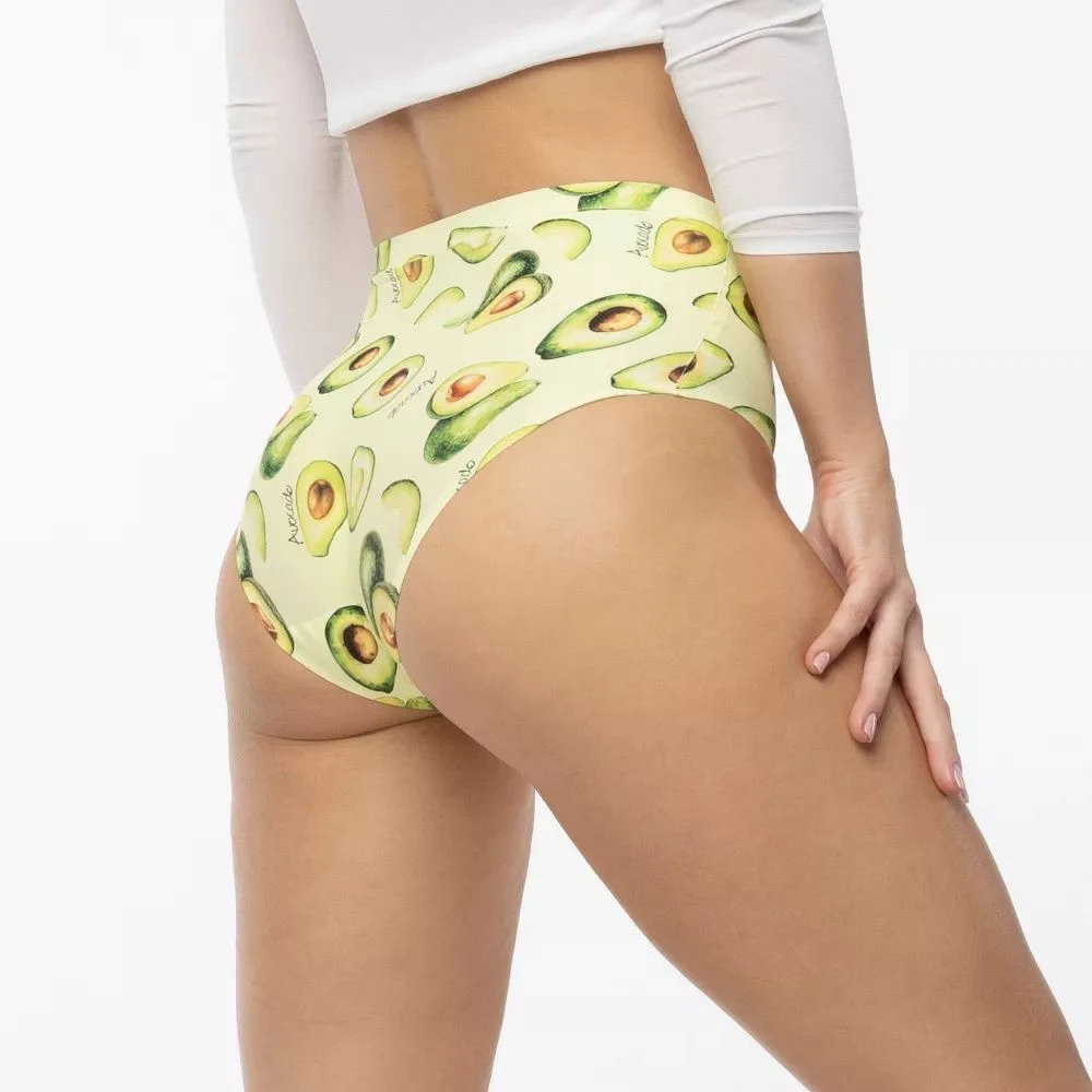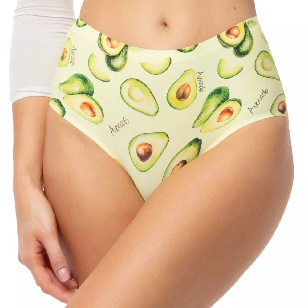 Dámské kalhotky Avocado simple maxi JULIMEX - zelená barva - barevný potisk - střižené laserem - bezešvé - široké boky