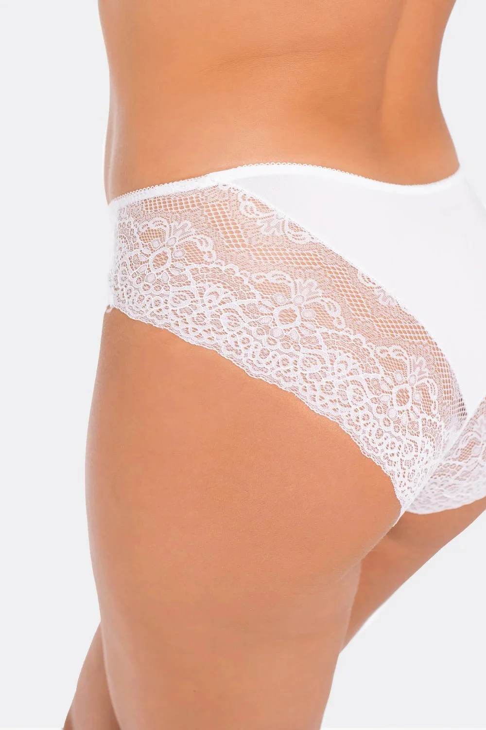 Efektní zadní díl kalhotek zdobí krajka s květinovým motivem. Kalhotky jsou zabalené v krabičce.
