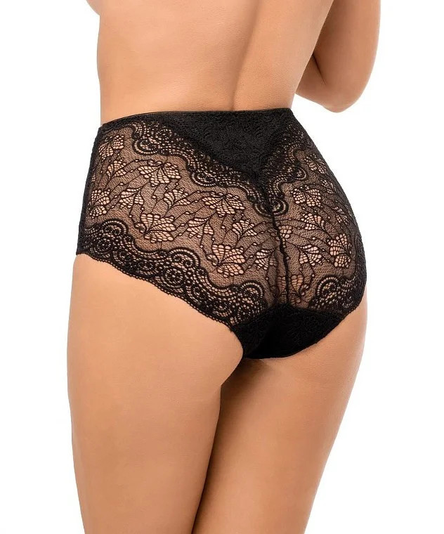 Přední díl kalhotek je podšitý pružnou tkaninou. Model zdobí měkká krajka s květinovým motivem. Kalhotky jsou zabalené v krabičce.