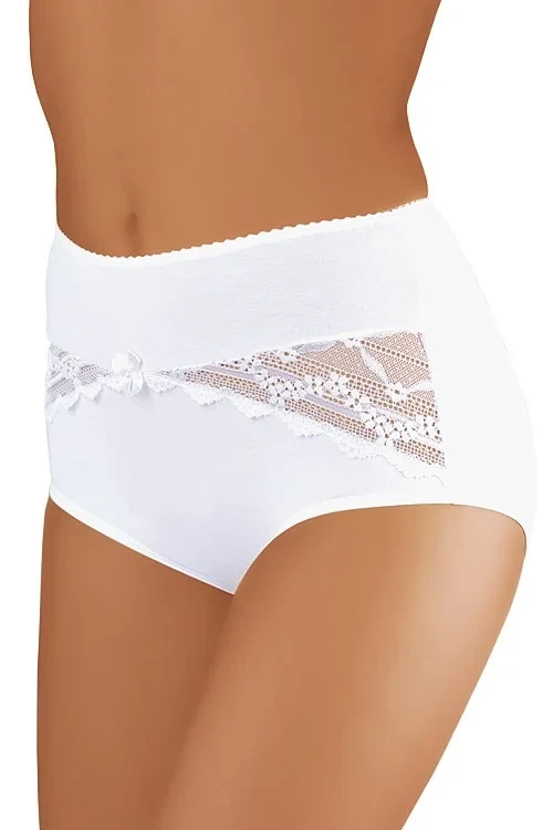 Mírně vyšší bavlněné kalhotky, které si oblíbí ženy milující klasiku a pohodlí. Pěkně doplněné krajkou, která koketně zdobí přední část prádla. Střed zvýrazněný malou saténovou mašličkou. 92 % bavlna, 8 % elastan.