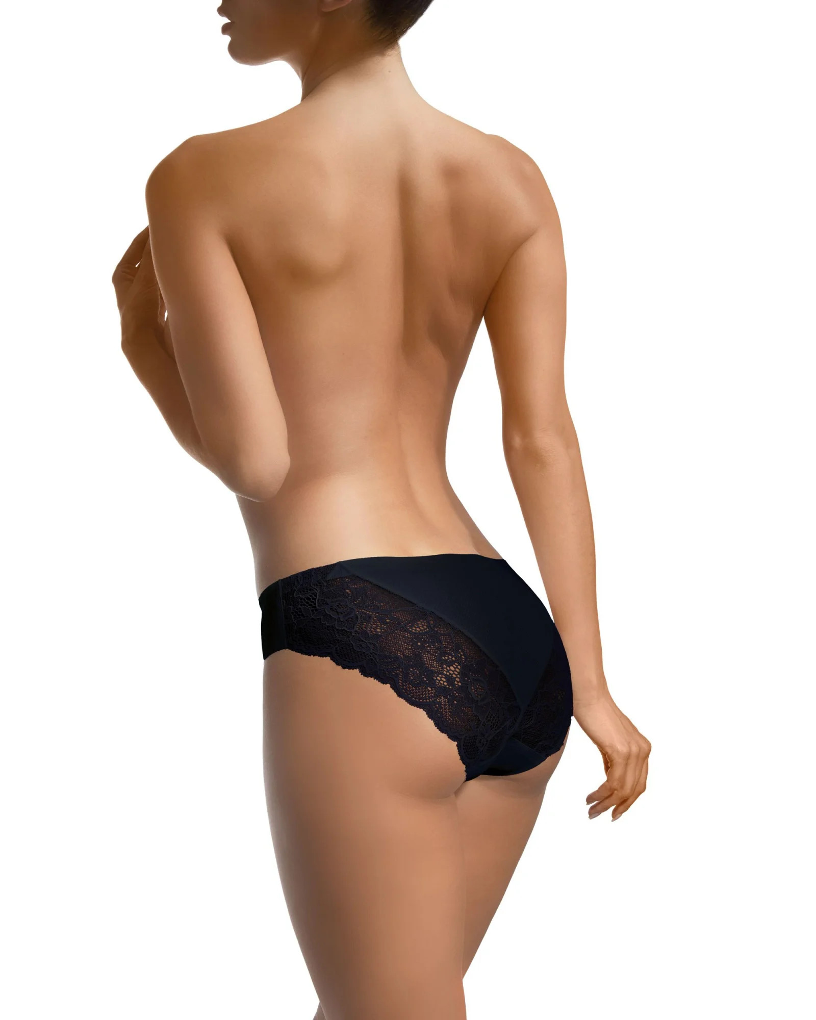 Skvělé, velmi ženské kalhotky z elastické, na dotek hedvábné tkaniny s mikrosíťovou strukturou, zdobené krajkou na hýždích. Smyslné, praktické a ideální pro každodenní nošení. Výrobek zabalený v krásné, ozdobné krabičce. Složení: 85 % polyamid, 15 % elastan.