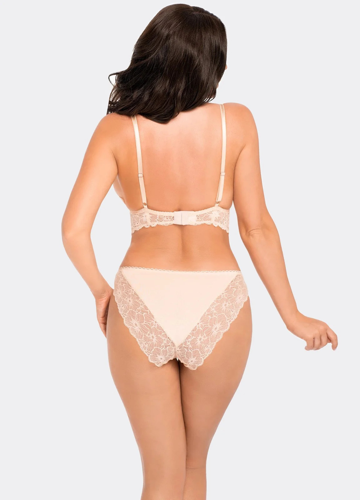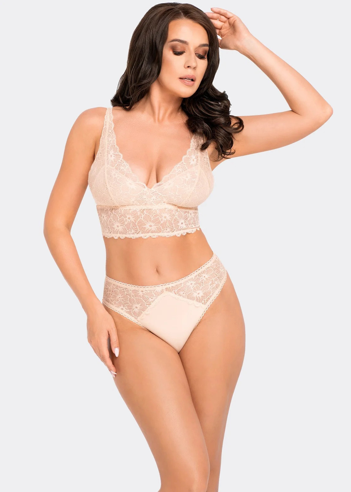 - horní linie a zadní strana nohou zdobené krajkou s květinovým motivem