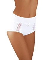 Vyšší dámské kalhotky typu midi, ušité z kvalitní bavlny s přídavkem lycry. Přední strana je ozdobená mašličkou a kPunčochové kalhotyovými všivkami. 92% bavlna, 8% elastan lycra.