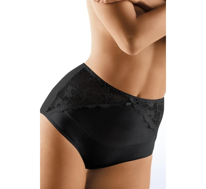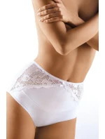 Dámské kalhotky ušité z kvalitní bavlny a elastanu. Jsou vysoké, zpevněné v bocích. Vpředu jsou kPunčochové kalhotyové všivky s květovaným motivem.