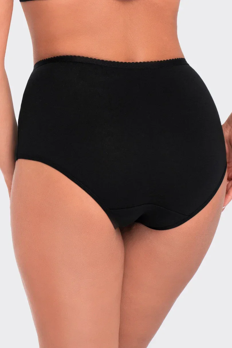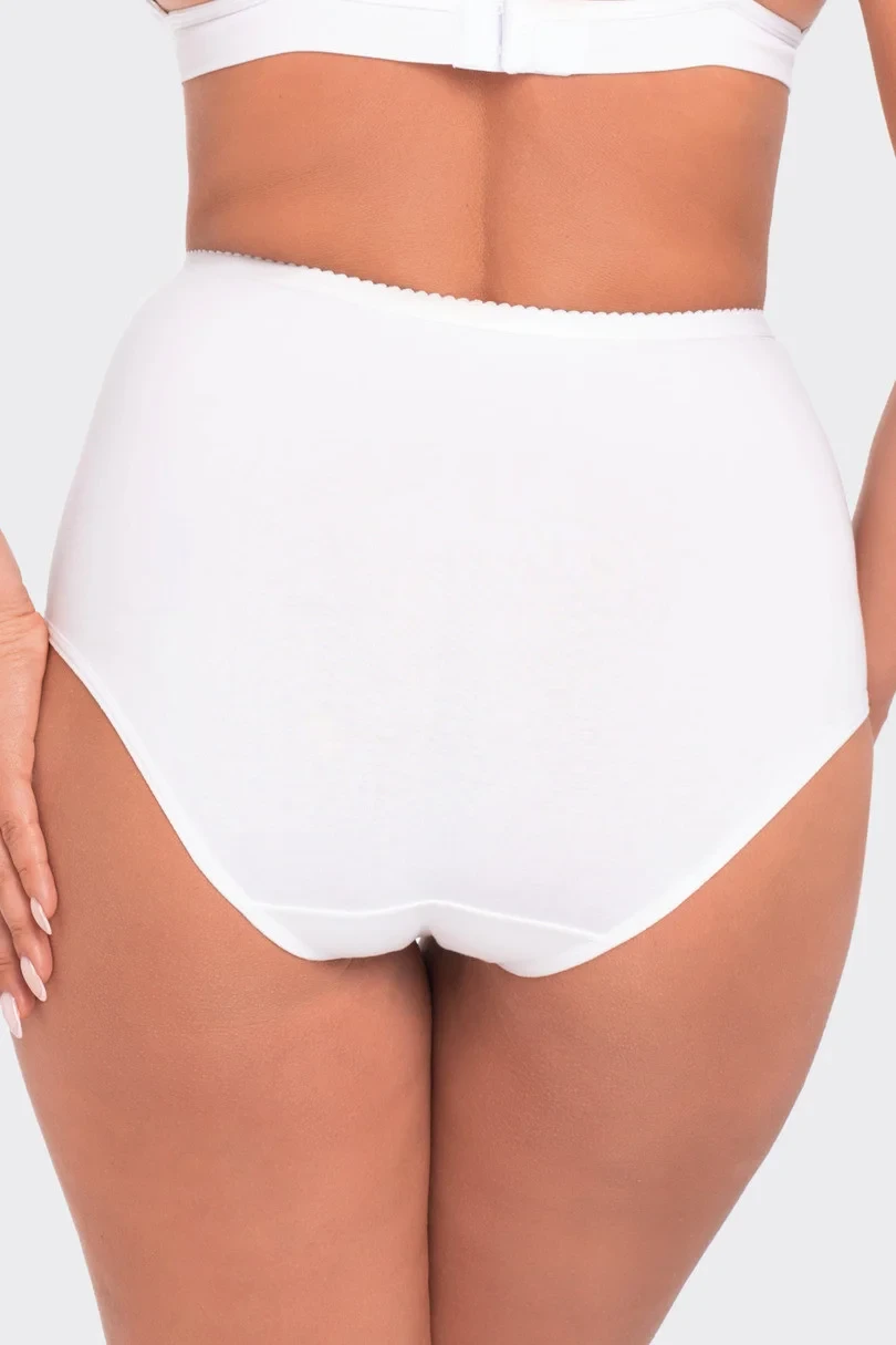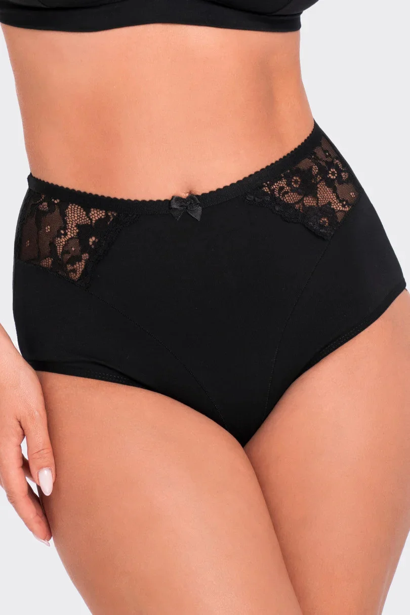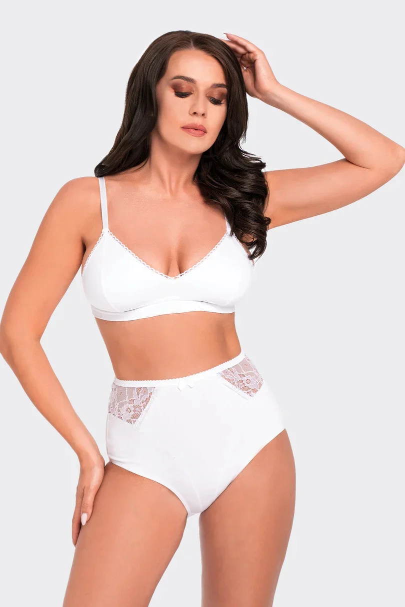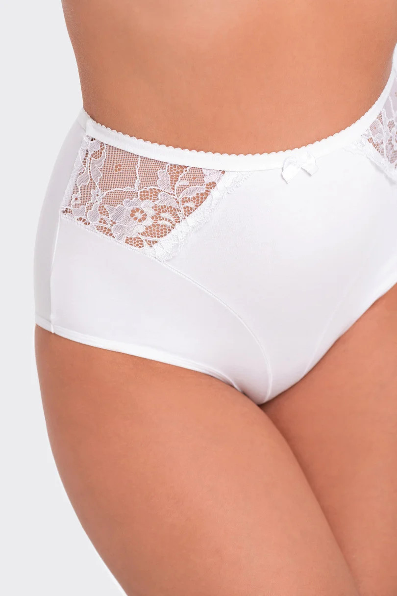 Dámské kalhotky z kvalitní bavlny. Jsou vysoké a zpevněné na bocích. Vpředu jsou malé kPunčochové kalhotyové všivky s květovaným vzorem. V Podvazkový páse je zevnitř silikonový pásek. 92% bavlna, 8% elastan.