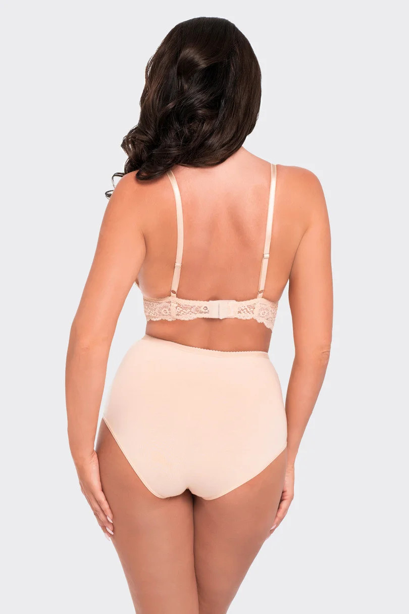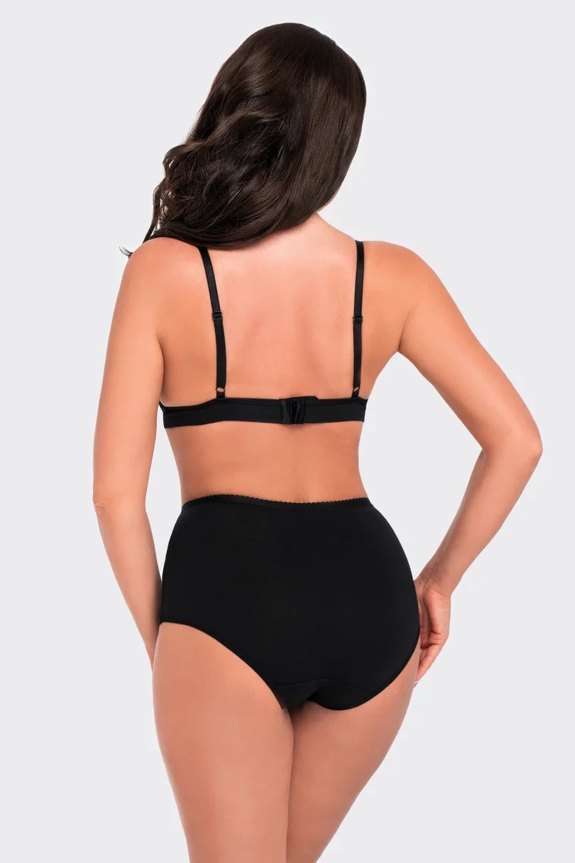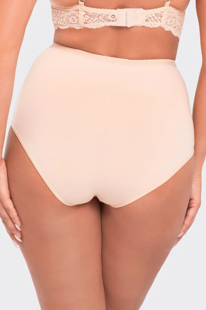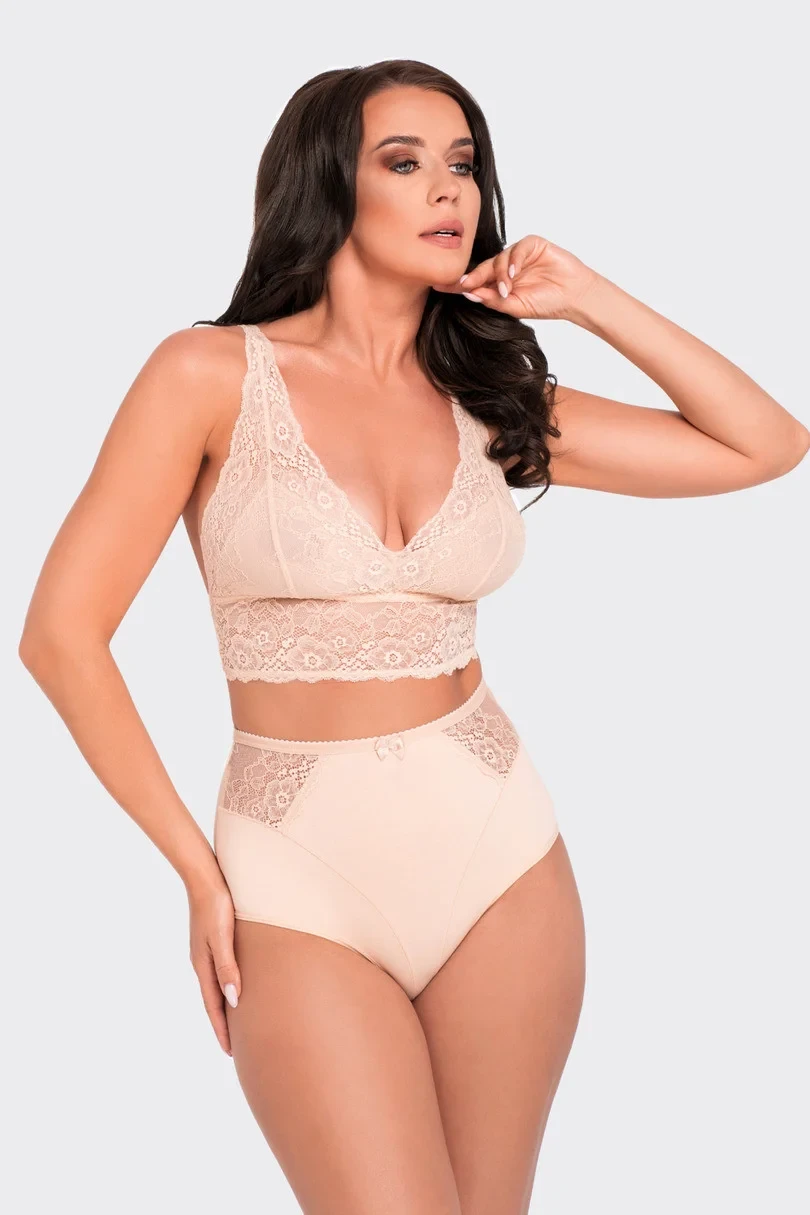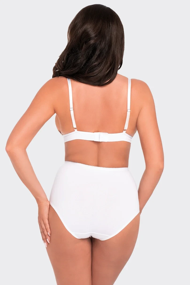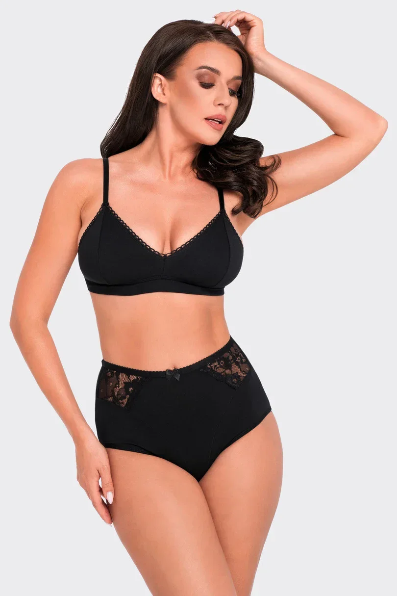 Dámské kalhotky z kvalitní bavlny. Jsou vysoké a zpevněné na bocích. Vpředu jsou malé kPunčochové kalhotyové všivky s květovaným vzorem. V Podvazkový páse je zevnitř silikonový pásek. 92% bavlna, 8% elastan.