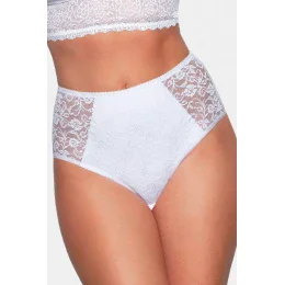 Dámské kalhotky s vyšším pasem. Vpředu je krajka podšitá jemně obepnutou látkou, která modeluje bříško. Pozadí je bavlněné. 92% bavlna, 8% elastan.