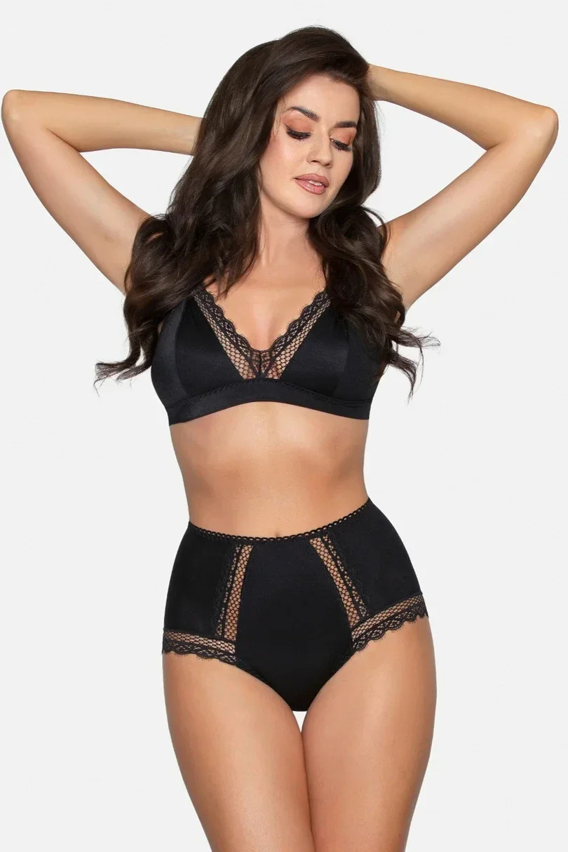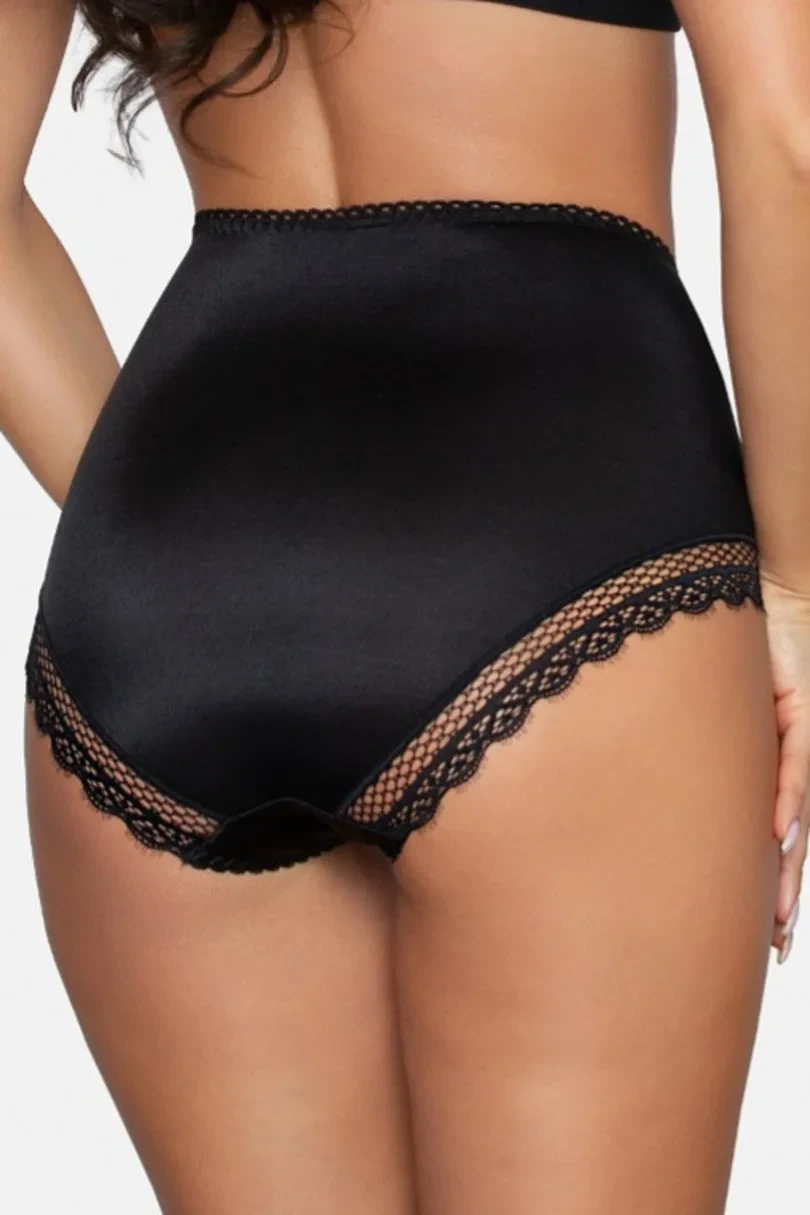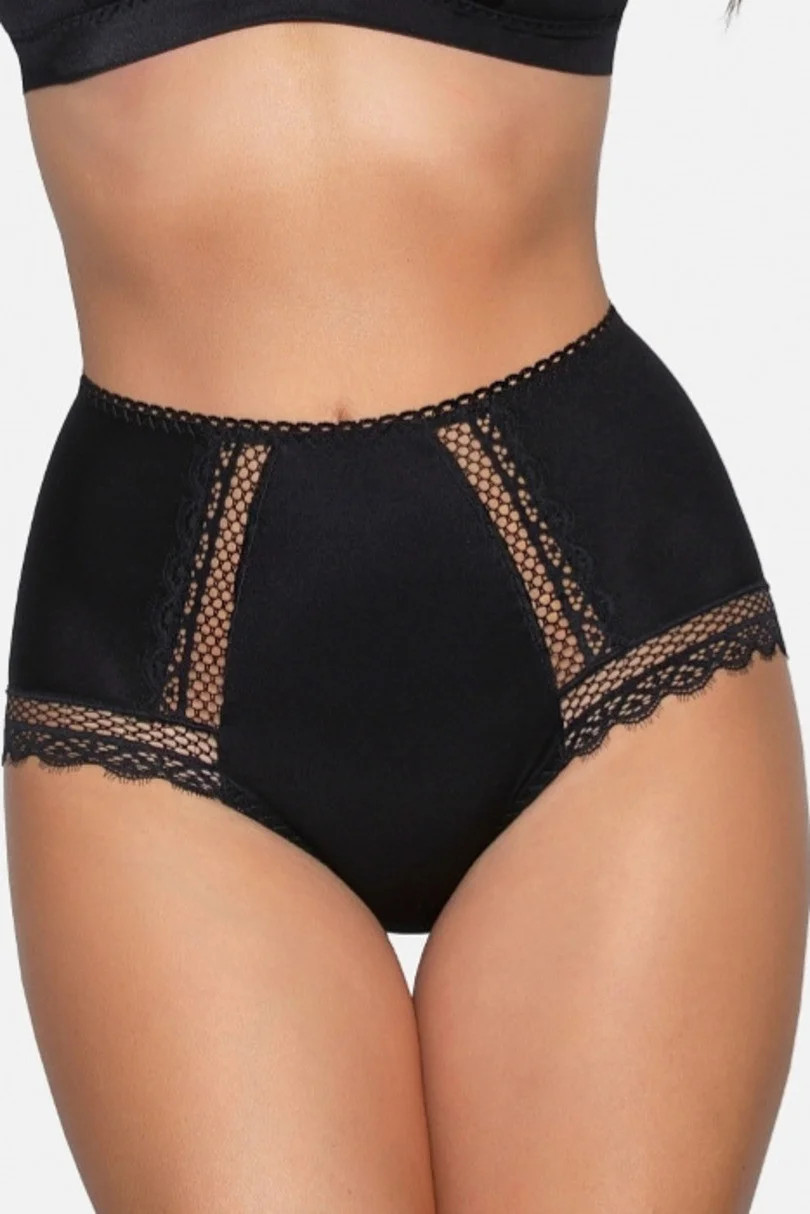 Dámské kalhotky s vysokým sedem a krajkovými vsadkami v přední části.