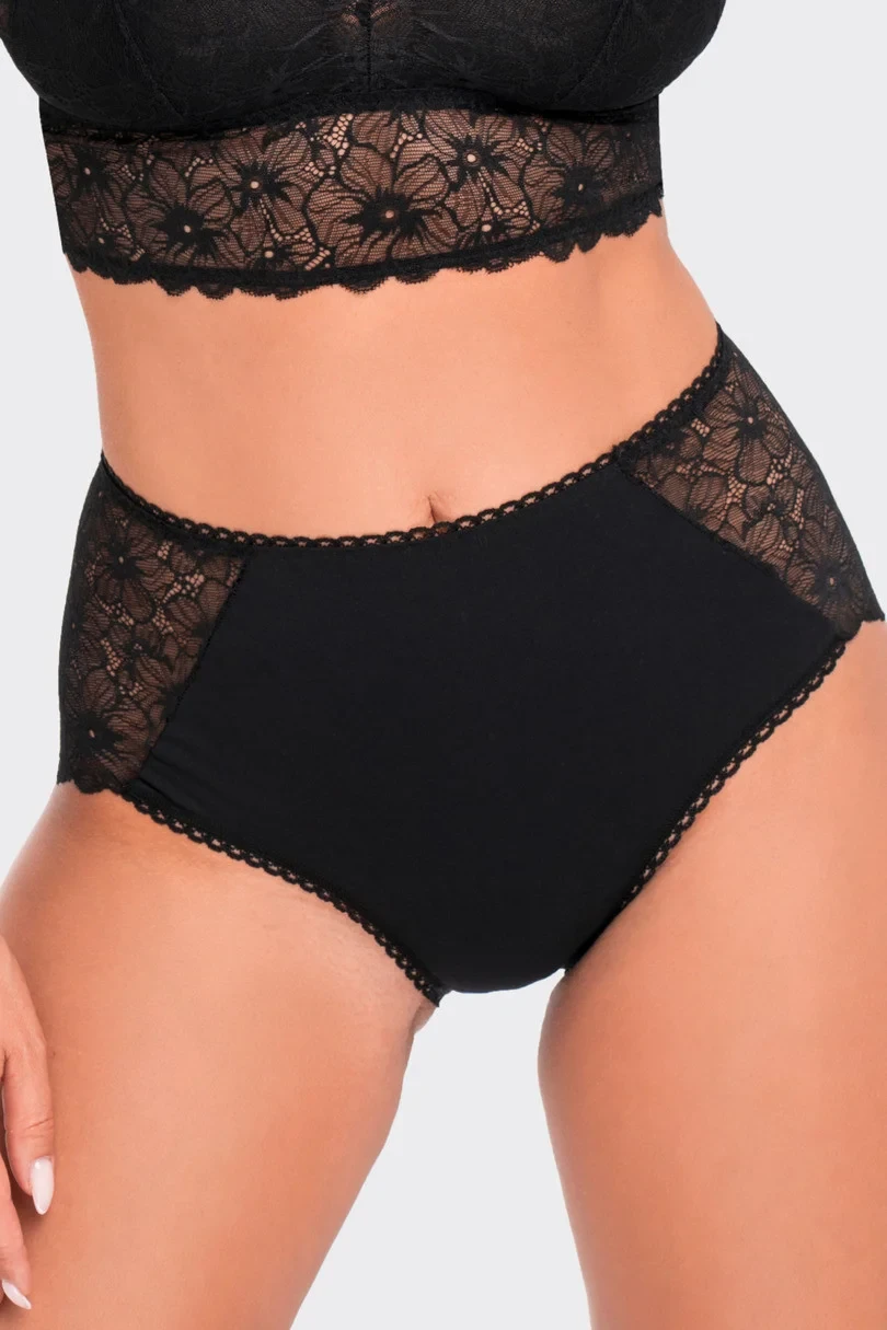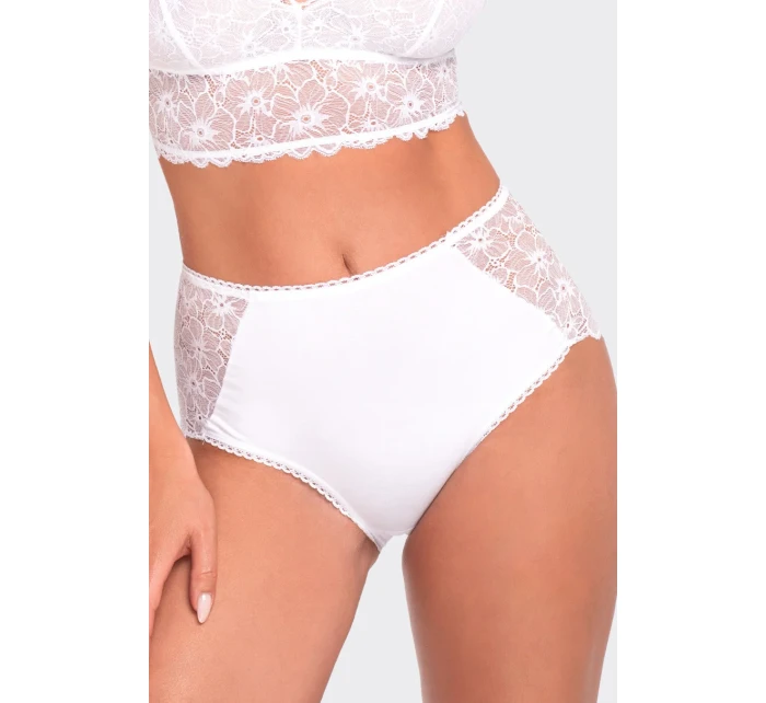 Dámské bavlněné kalhotky s vysokým pasem, prodyšná tělová bavlna se dokonale snoubí s širokou krajkou.