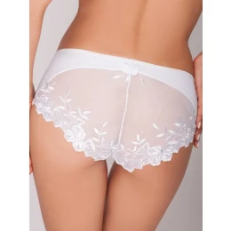 Okouzlující složení - pohodlné kalhotky s krásnou krajkovou zadní částí. Mírně průsvitné, pokryté vyšívanými růžičkami. Složení: 85 % polyester, 15 % elastan.