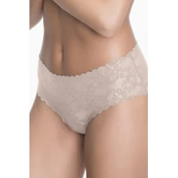 Krásné dámské kalhotky ušité z krajky, která je tak lehká a měkká, že ji skoro ani necítíte. Kalhotky mají tenké okraje a nejdou vidět pod oblečením. V rozkroku mají bavlněnou, hygienickou vložku. Složení: 79% polyamid, 20% elastan, 1% bavlna.