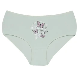 Dámské kalhotky Betty. Dámské kalhotky klasického střihu. Kalhotky jsou ozdobeny potiskem motýlů, květin a drobným nápisem. Použitý materiál je příjemný a poddajný na dotek.