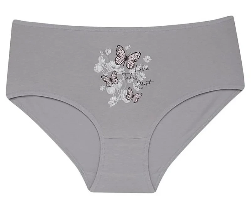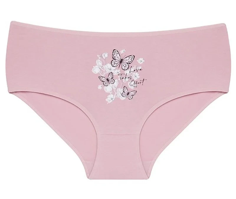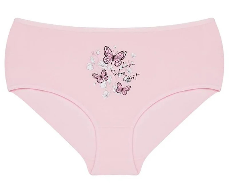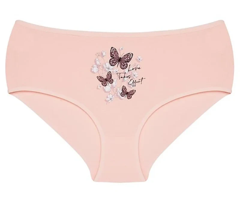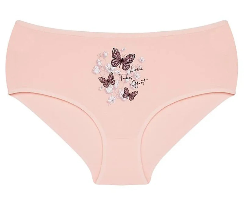 Dámské kalhotky Betty. Dámské kalhotky klasického střihu. Kalhotky jsou ozdobeny potiskem motýlů, květin a drobným nápisem. Použitý materiál je příjemný a poddajný na dotek.