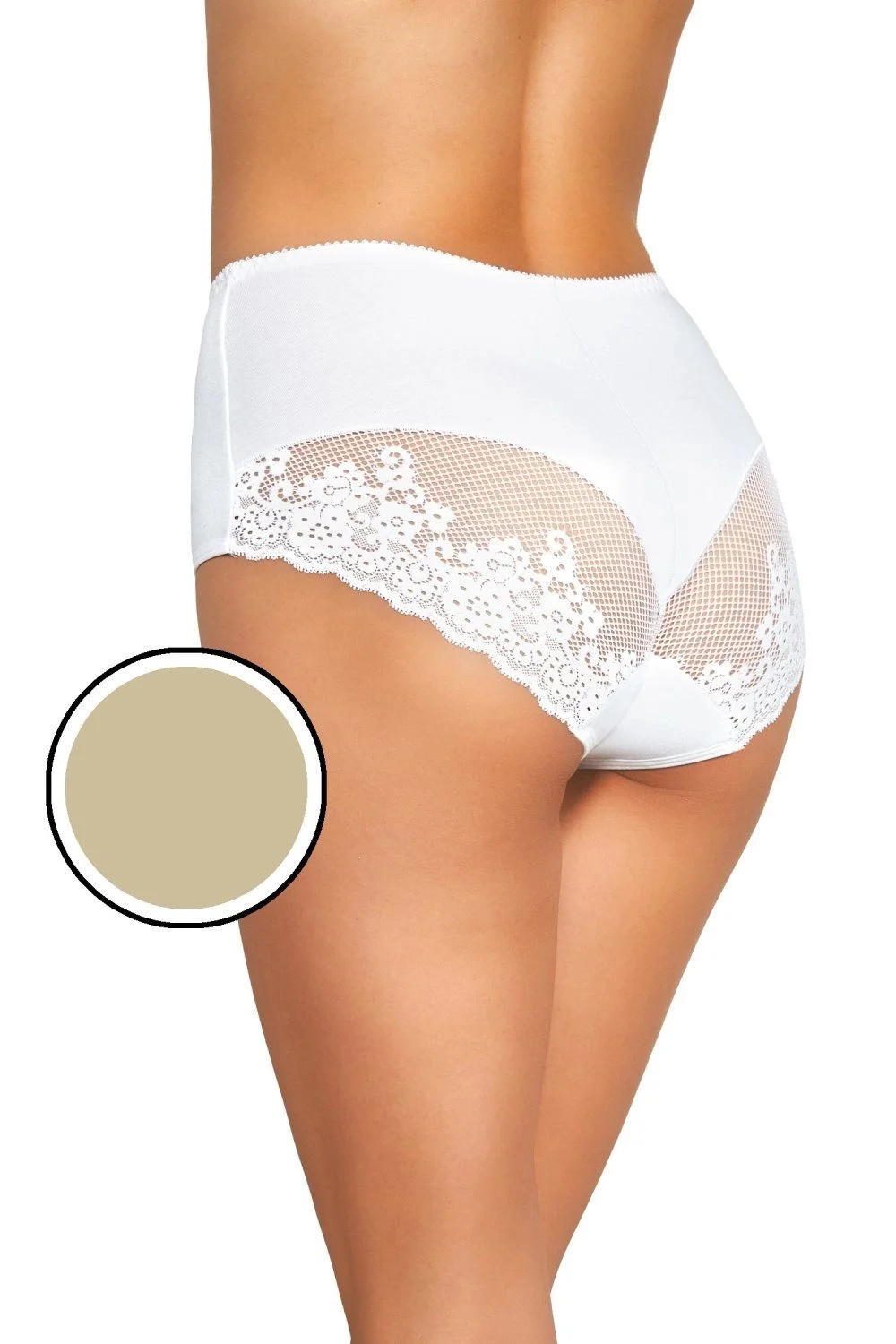Dámské kalhotky 185 Gabidar - béžová barva - kalhotky mají vyšší střih - na zadní části zdobené jemnou krajkou - elegantní design