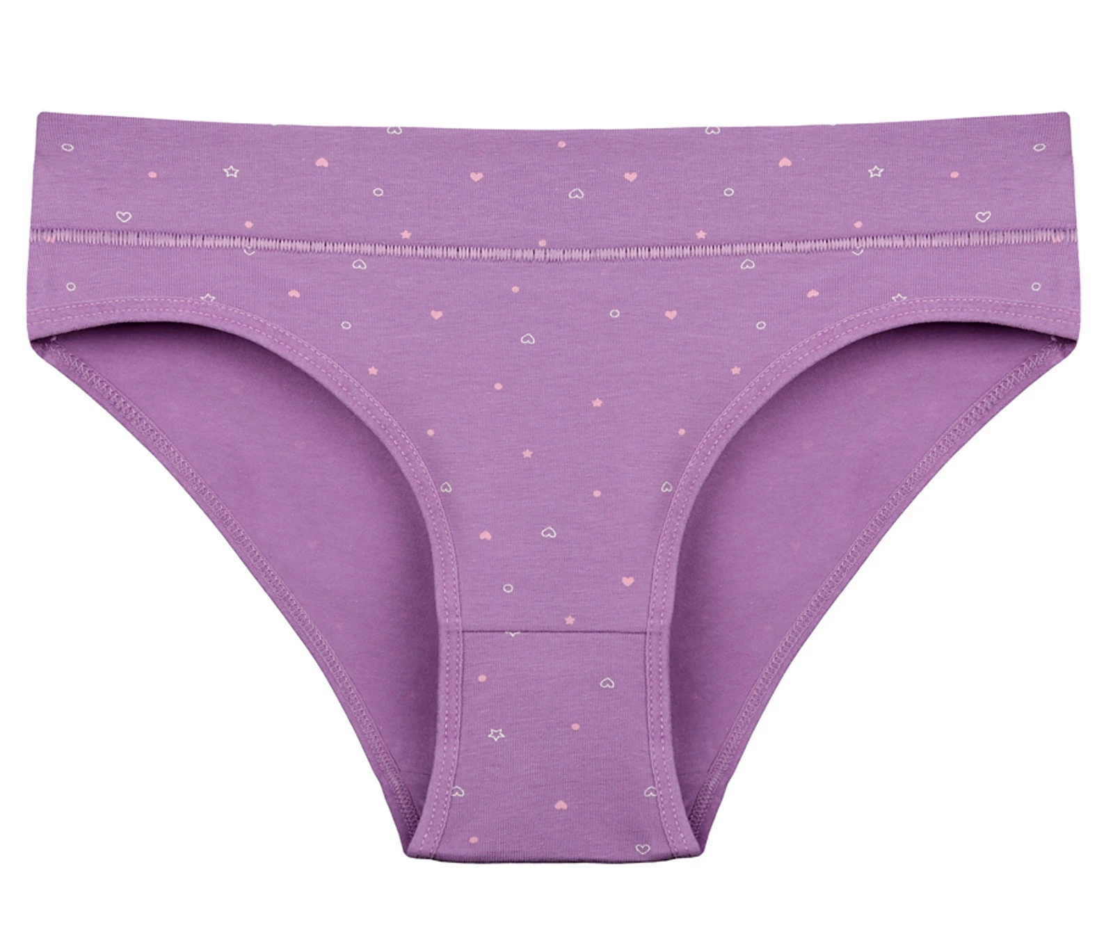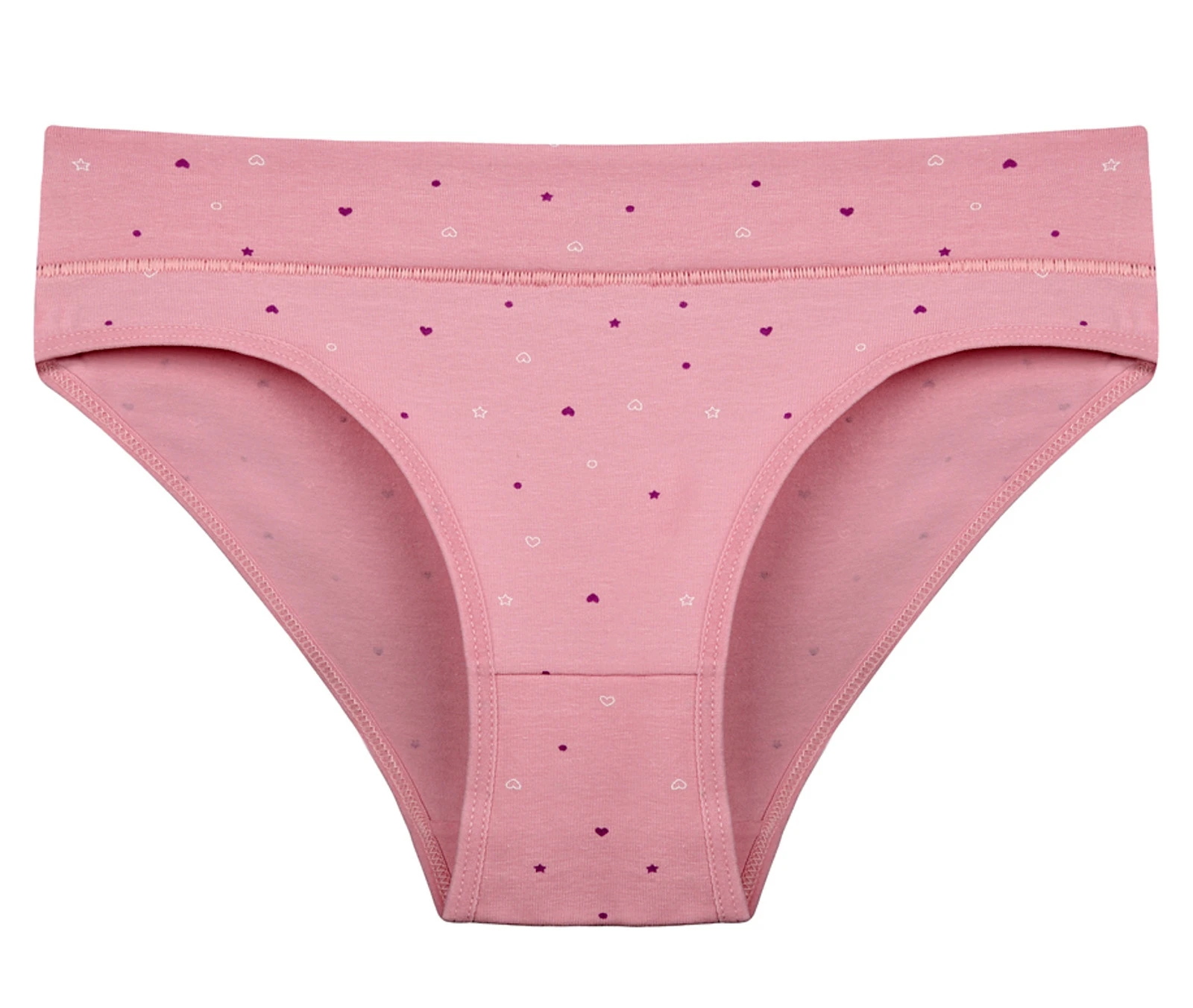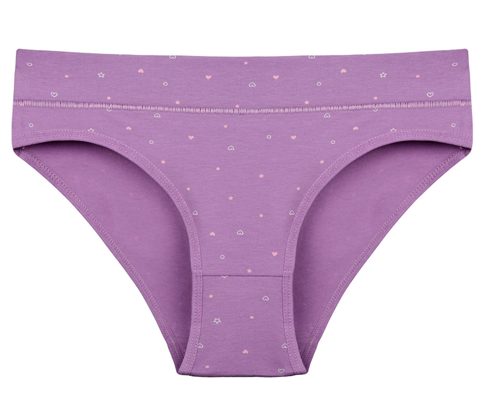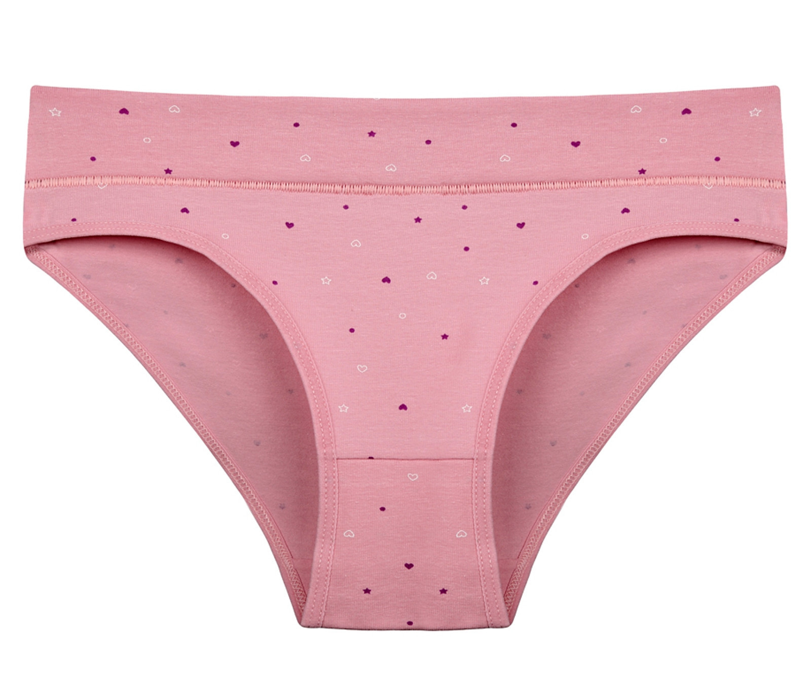 Dámské kalhotky Bianka. Slušivé klasické kalhotky jsou pohodlným typem spodního prádla pro všechny příležitosti. Jsou potištěné srdíčky a v přední části ozdobené širším lemem. Obzvláště oceníte materiálové složení - 95% bavlna a 5% elasten. Použitý materiál je příjemný a poddajný na dotek.