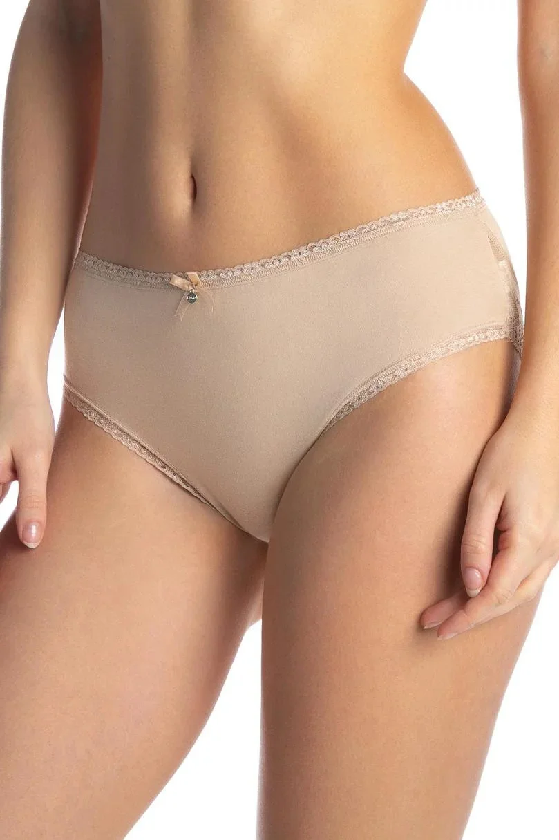 Dámské kalhotky ušité z vzorované bavlny. Na pozadí krajka. Složení: 95% bavlna, 5% elastan.