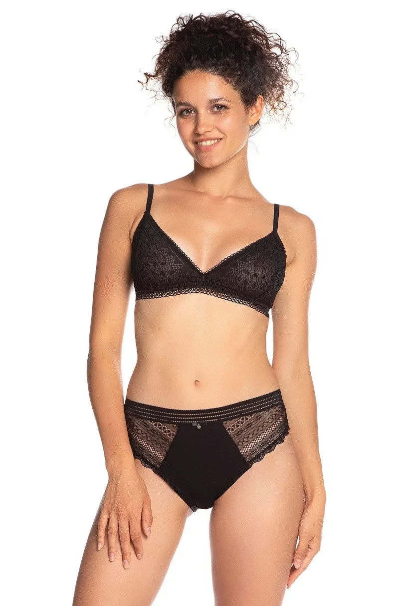 Přední díl kalhotek je vyrobený z hladké bavlny. Boky a zadní díl modelu jsou ušité z efektní krajky. V pase modelu je širší ažurová guma. Kalhotky jsou balené po dvou kusech.