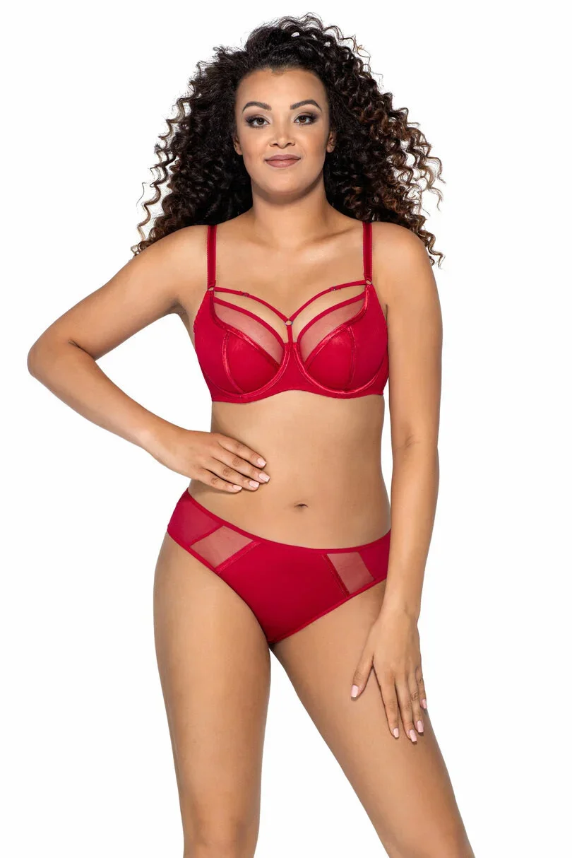 Hladké, červené nohavičky s podprsenkou sú kombináciou výrazného štýlu a pohodlia. Ohnivá červená farba látky upúta pozornosť, zatiaľ čo prešívanie dúhovou niťou dodáva originálny a netradičný nádych.