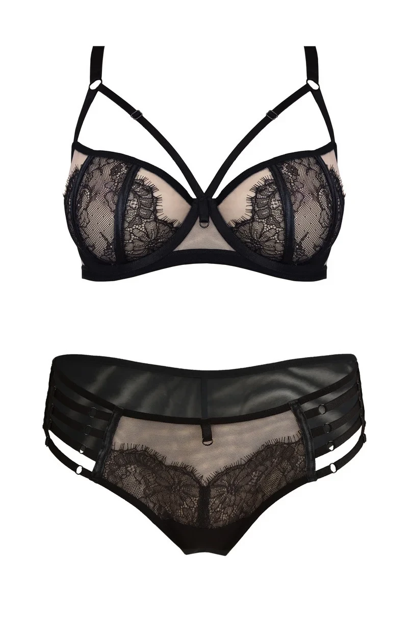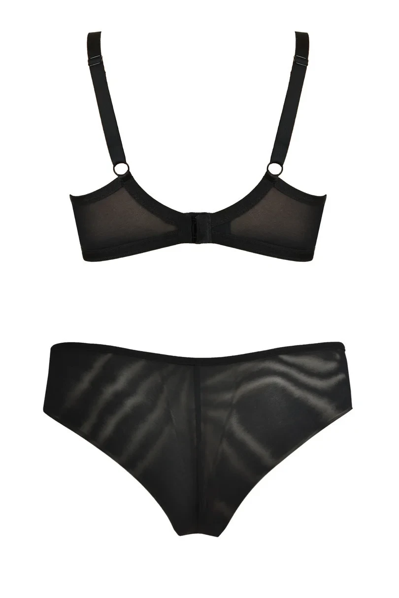 Zadní díl kalhotek je vyrobený ze dvojitého tylu a je vysoko vykrojený. Přední díl modelu zdobí krajka. Na bocích jsou pásky, jejichž délku je možné nastavit.