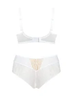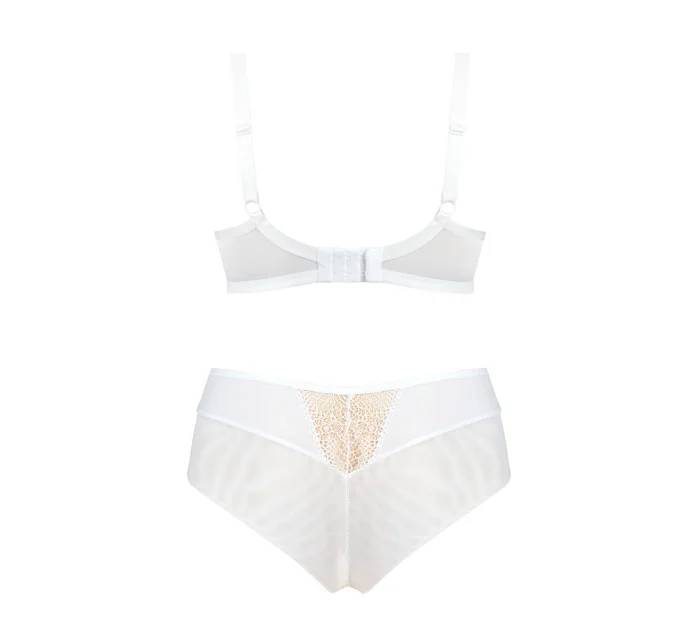 Zadní díl kalhotek je vyrobený z pružné síťoviny, je vysoko vykrojený a je lemovaný bezešvě. Přední díl modelu je ušitý z bílé krajky s květinovým motivem. Boky tvoří mikrovlákno a síťovina. V pase modelu je bílá lemovka a bižuterní ozdobou ve tvaru kolečka.