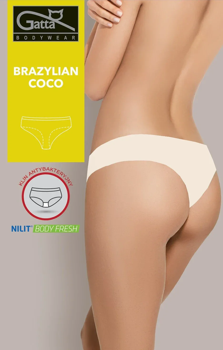 Bezešvé dámské kalhotky typu "brazilky" s hygienickým antibakteriálním klínem.