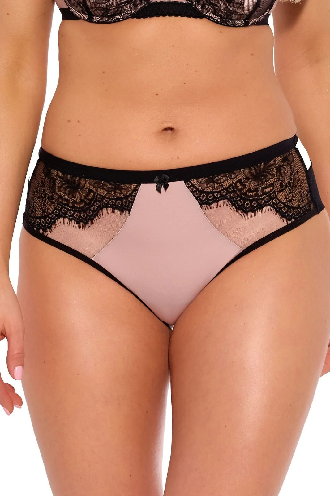 - přední a zadní díl z pudrově růžového mikrovlákna, prolamované krajky a síťoviny