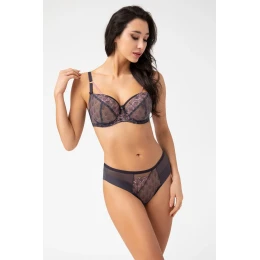Ve středu kalhotek je asymetrický prvek z potištěného tylu a z výšivky podšité hladkým tylem. Boky modelu jsou ušité z pružného tylu. Tyl je ve vrchní části modelu jednovrstvý a ve spodní části je přeložený.
