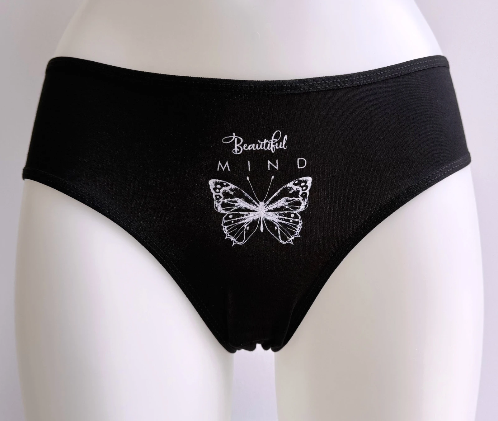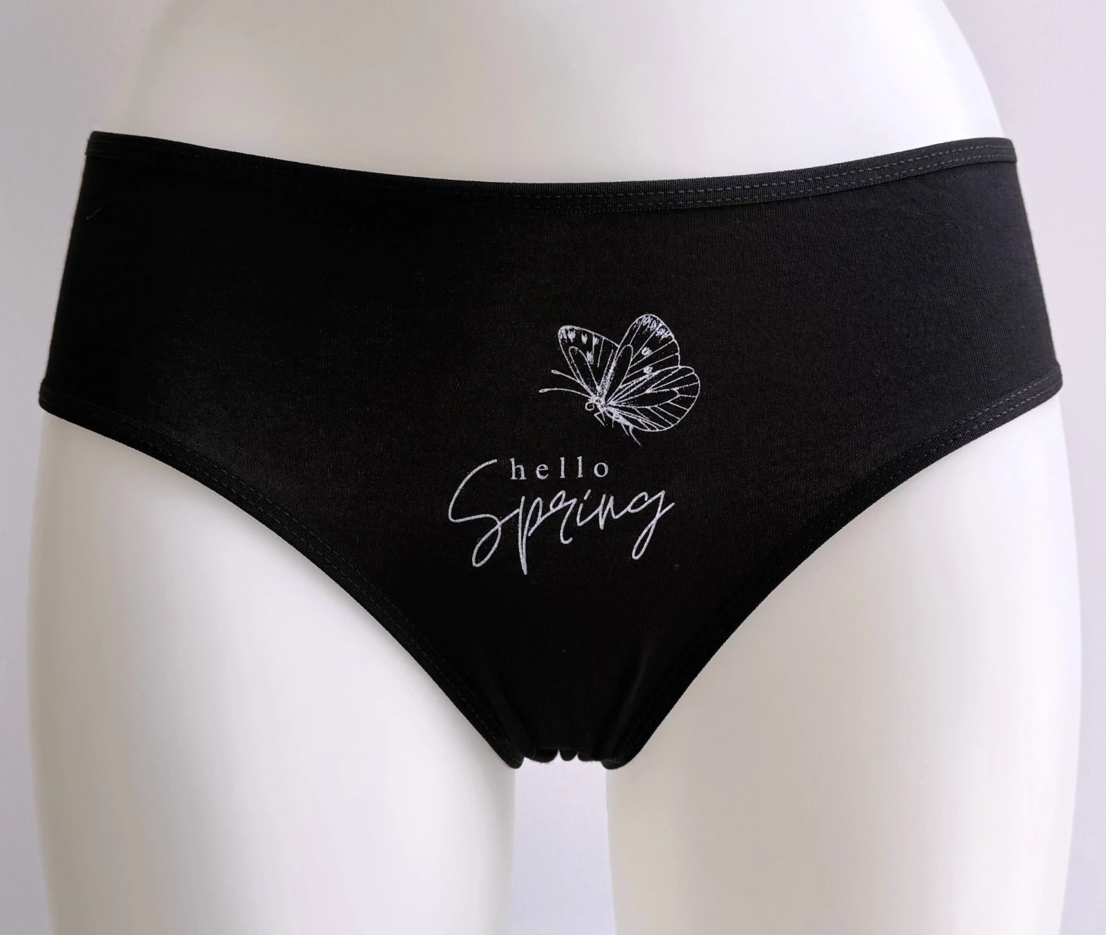 Dámské bavlněné kalhotky Butterfly. MIX obrázků. Pokud nějaký preferujete, popište do poznámky objednávky. Klasické kalhotky zdobené obrázkem motýla jsou pohodlným typem spodního prádla pro všechny příležitosti. Obzvláště oceníte materiálové složení - 95% bavlna a 5% elasten. Použitý materiál je příjemný a poddajný na dotek.
