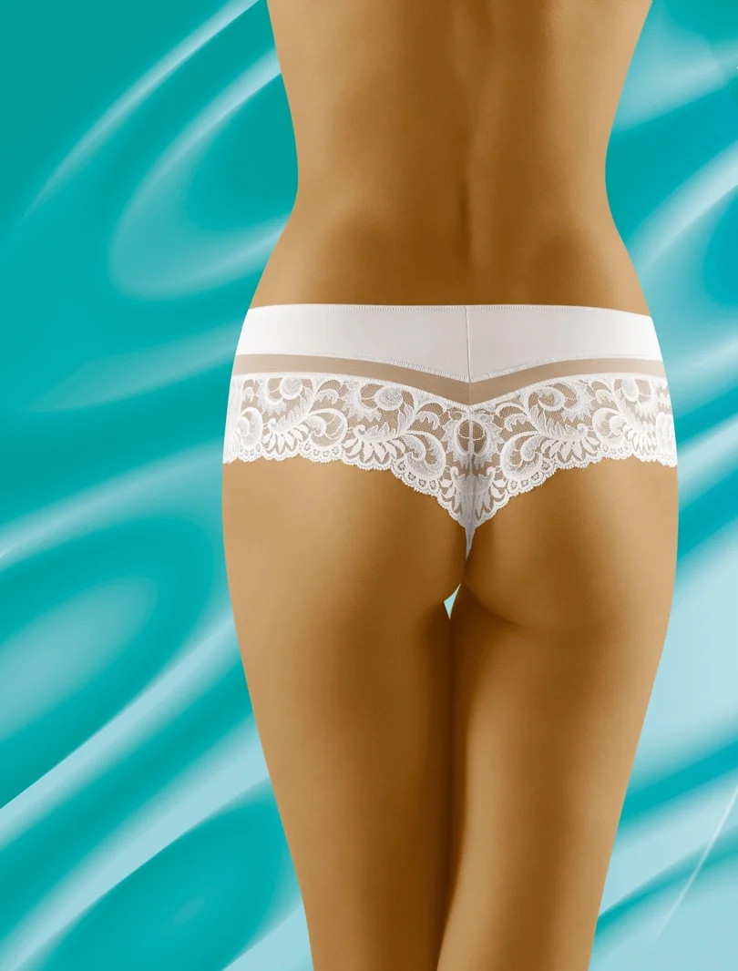 Originální dámské kalhotky stringo-šortky, které jsou ozdobené krajkou.