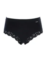 Dámské kalhotky klasického střihu značky Cotonella s vyšším pasem. Kalhotky jsou kombinací hladké látky a květinové krajky v přední části obvodu nohaviček. V horním obvodu je vsazena aplikace s logem Cotonella. Do vnitřního dílu je zapracován bavlněný klínek z BIO bavlny pro komfortní nošení.
