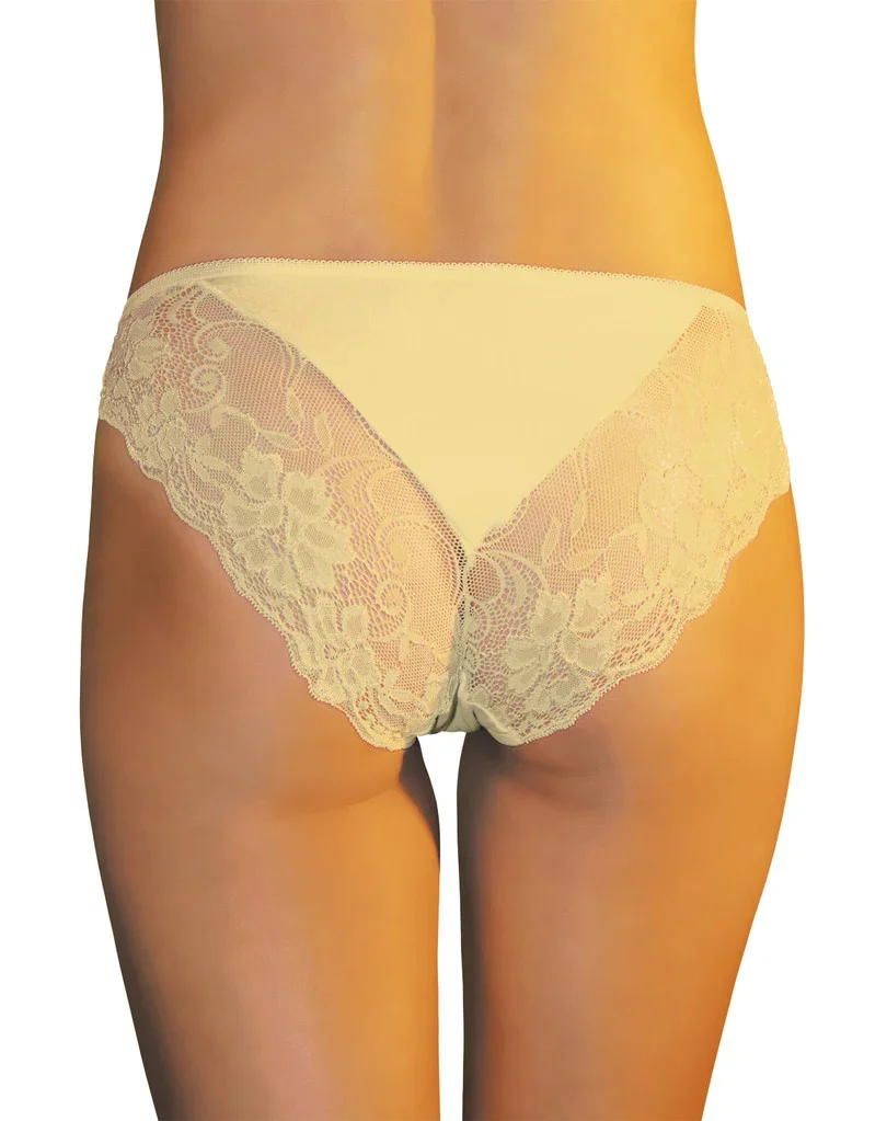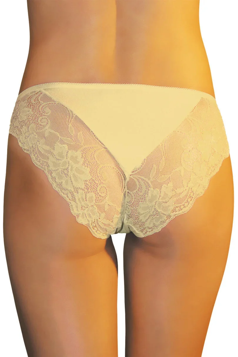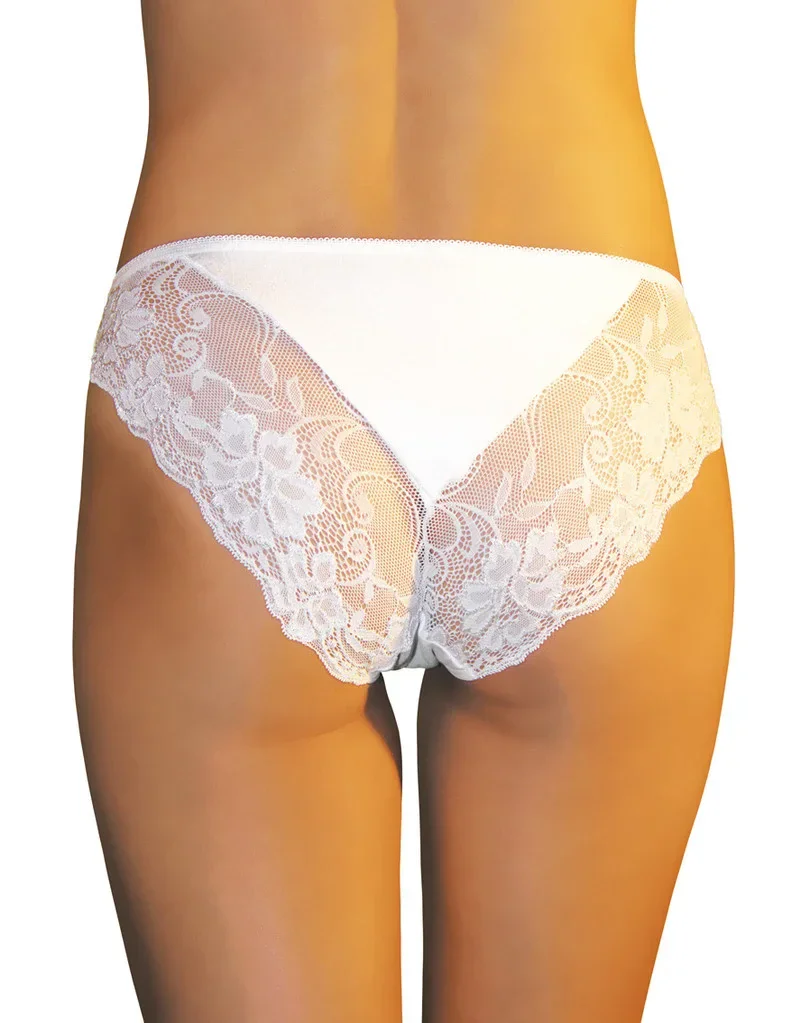 Dámské kalhotky z kvalitní bavlny (95%) a elastanu. Na pozadí je ažurová kPunčochové kalhotya s květovaným motivem.