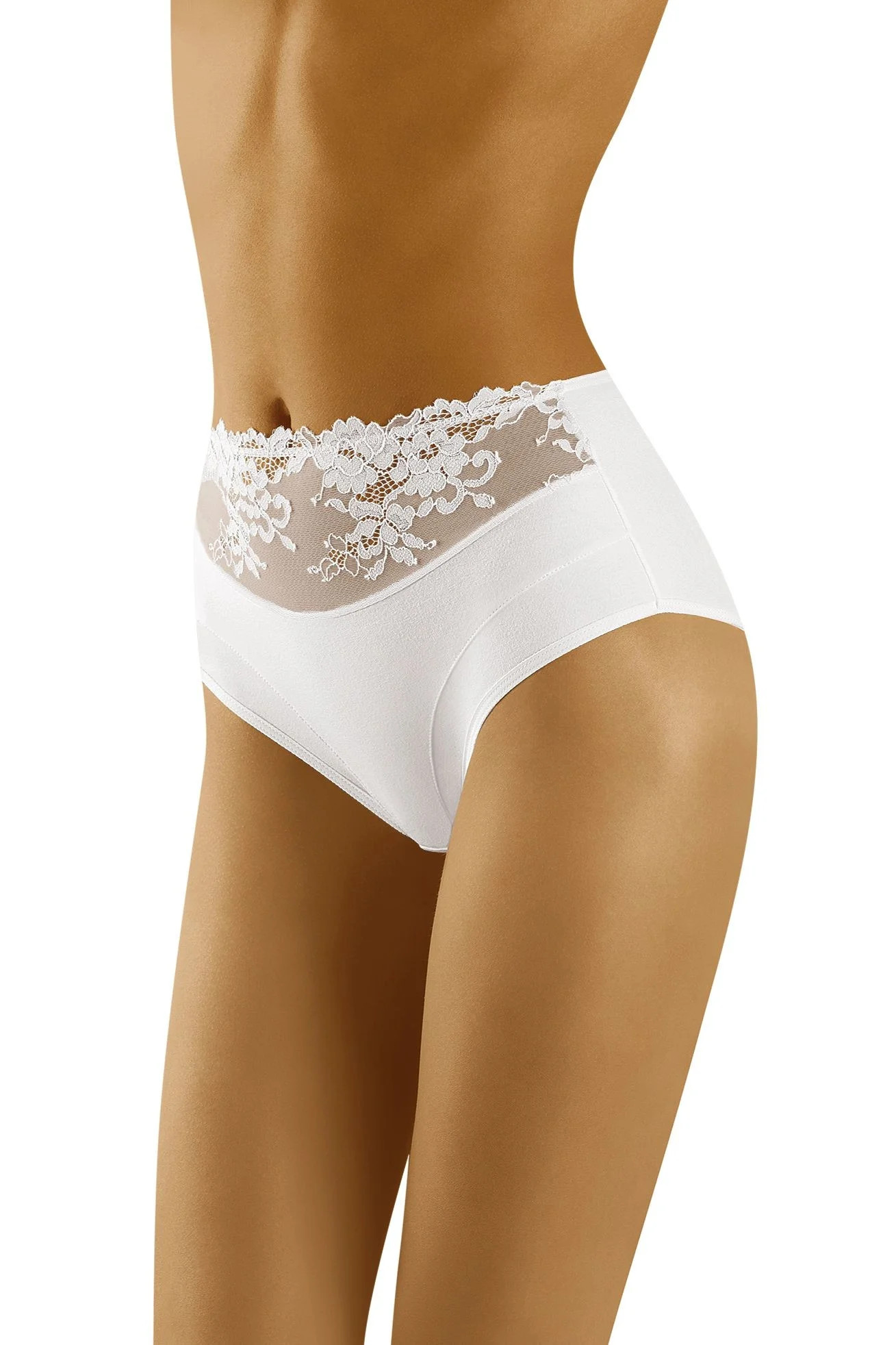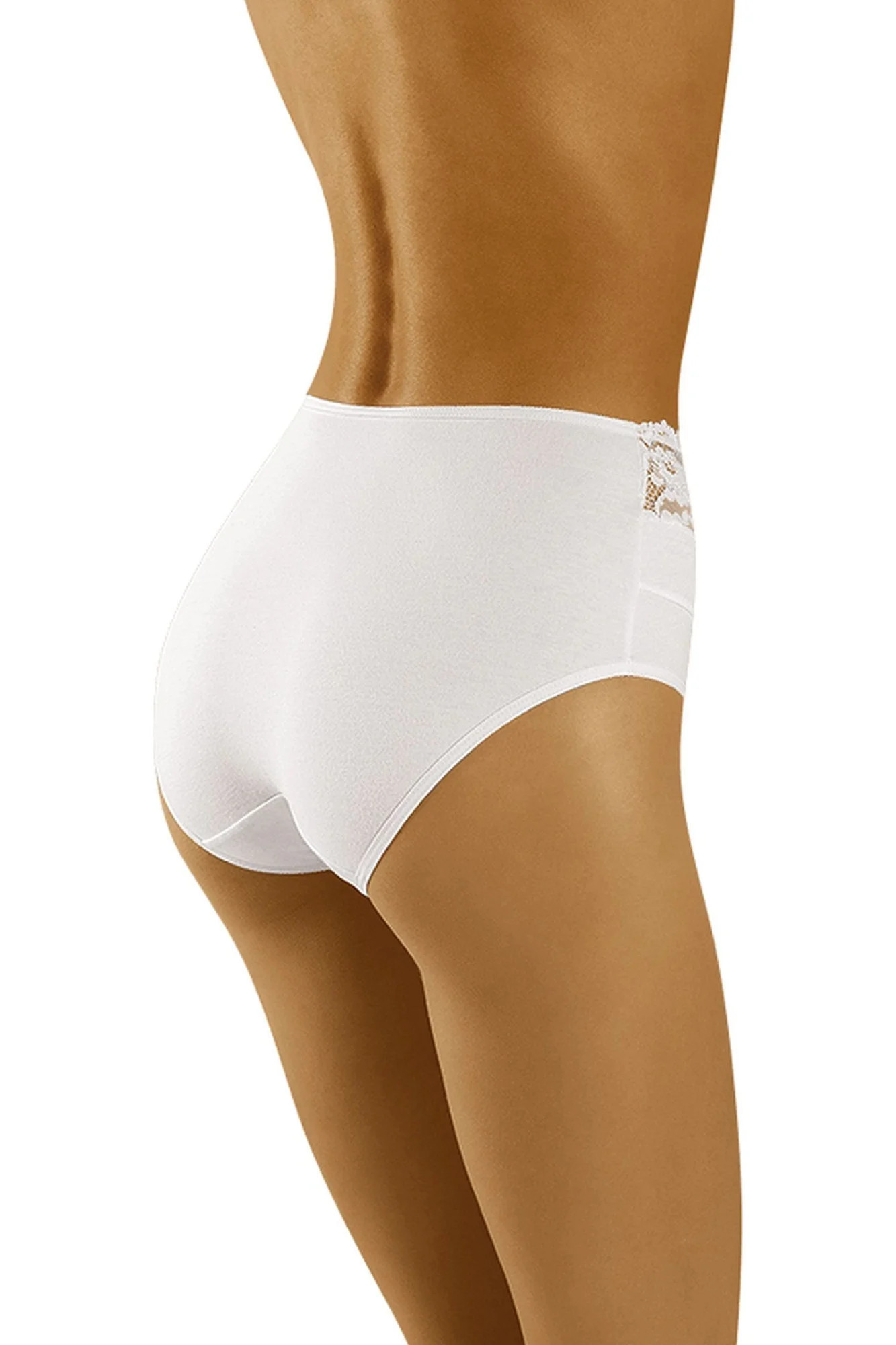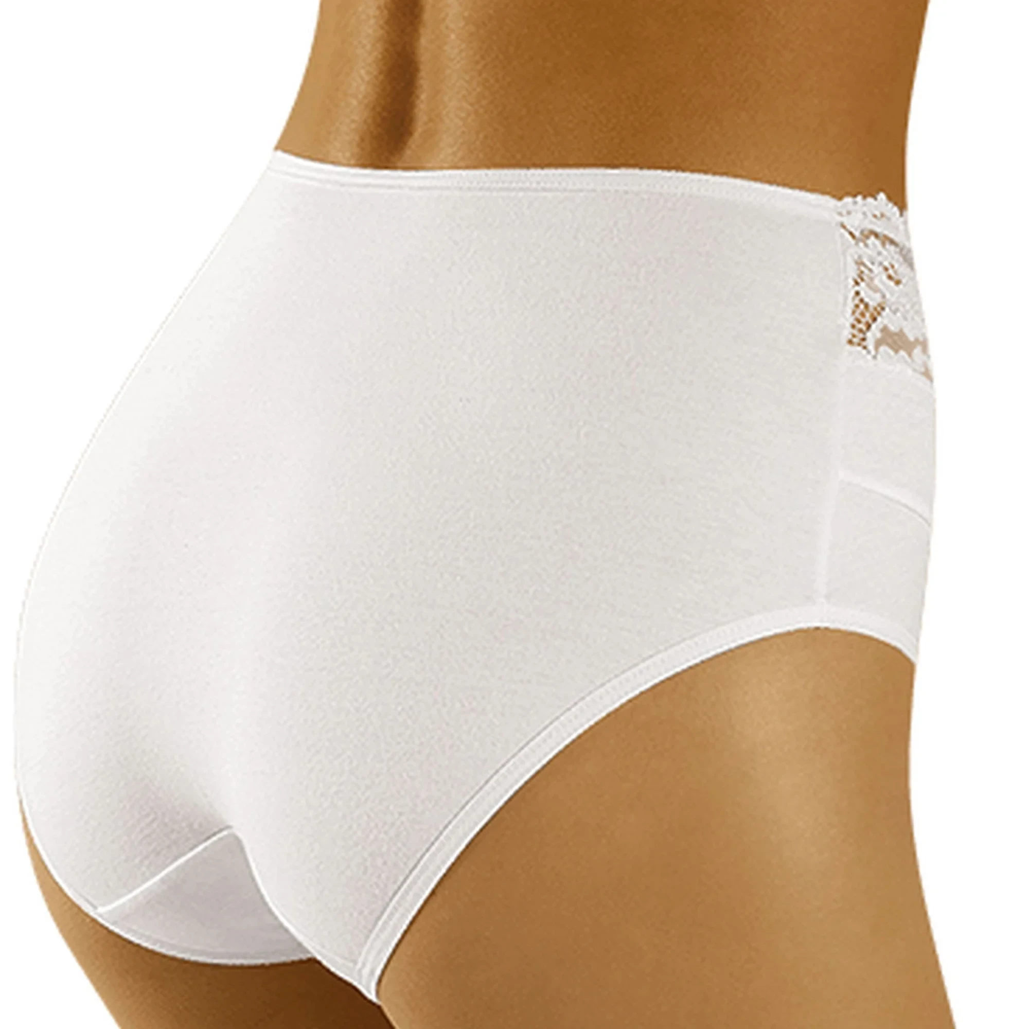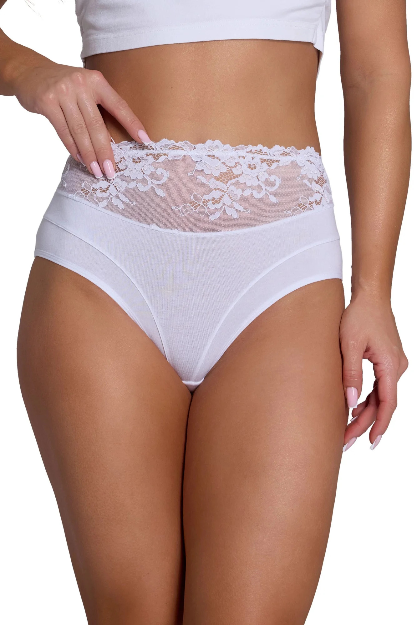 Dámské kalhotky Eco-HI Wol-bar - bílá barva - z vysoce jakostní bavlny - vyšší pas - pas zdobený krajskou s květinovým motivem - zadní část je hladká