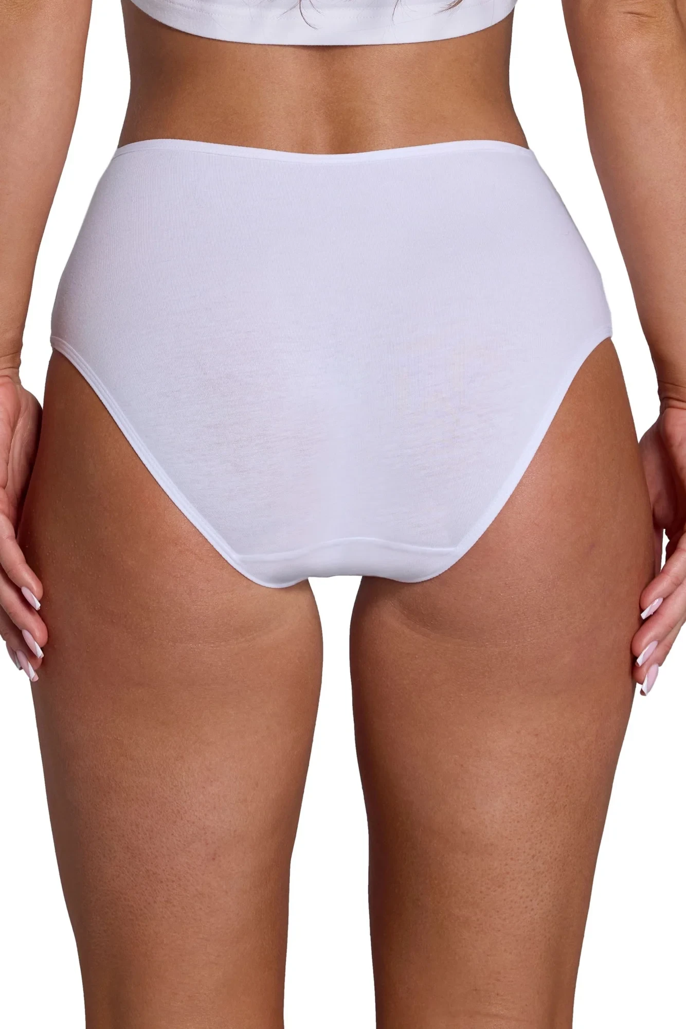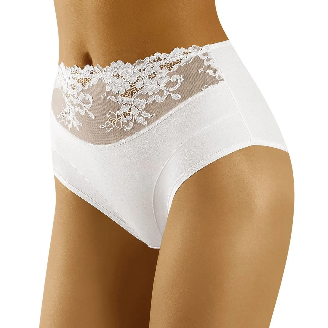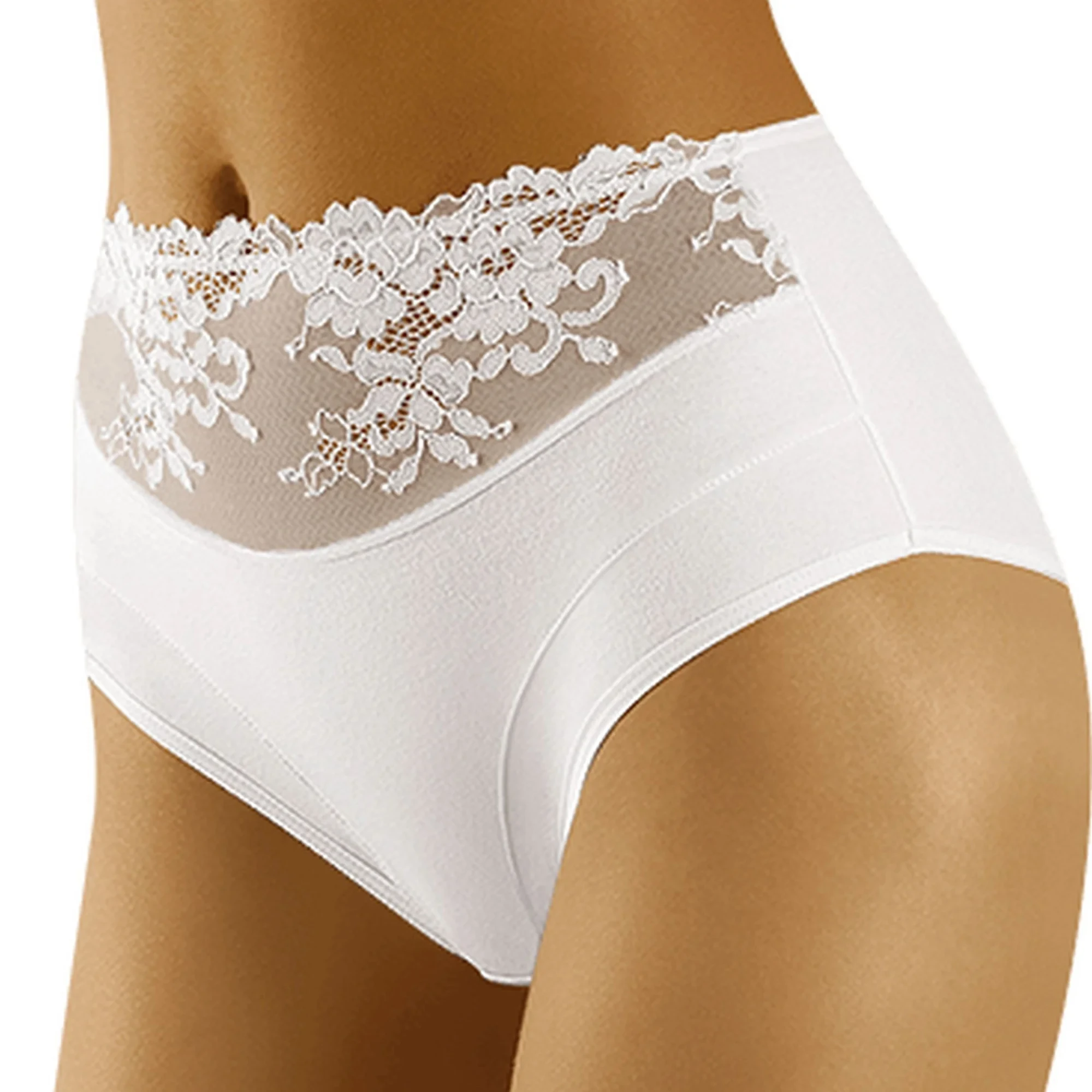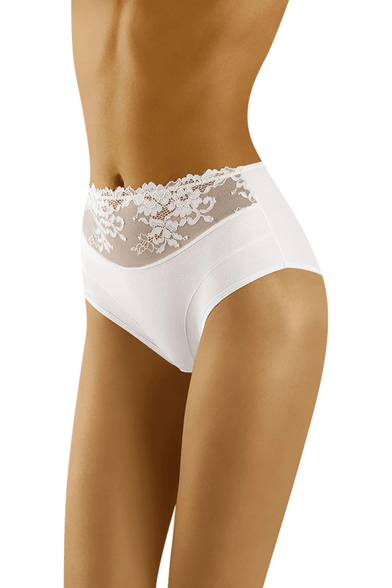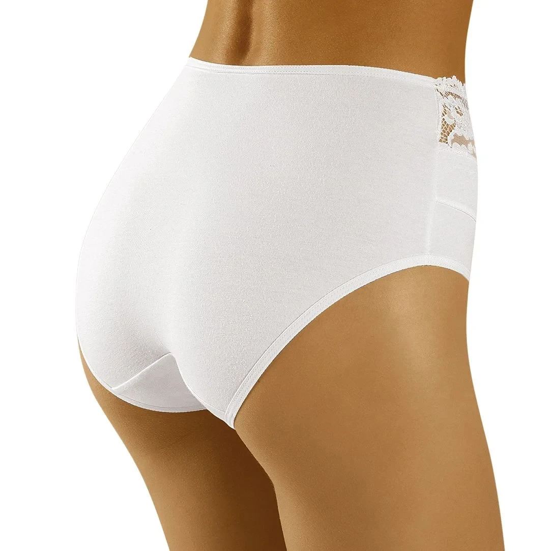 Dámské kalhotky Eco-HI Wol-bar - bílá barva - z vysoce jakostní bavlny - vyšší pas - pas zdobený krajskou s květinovým motivem - zadní část je hladká