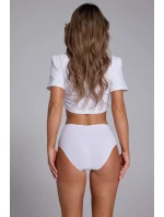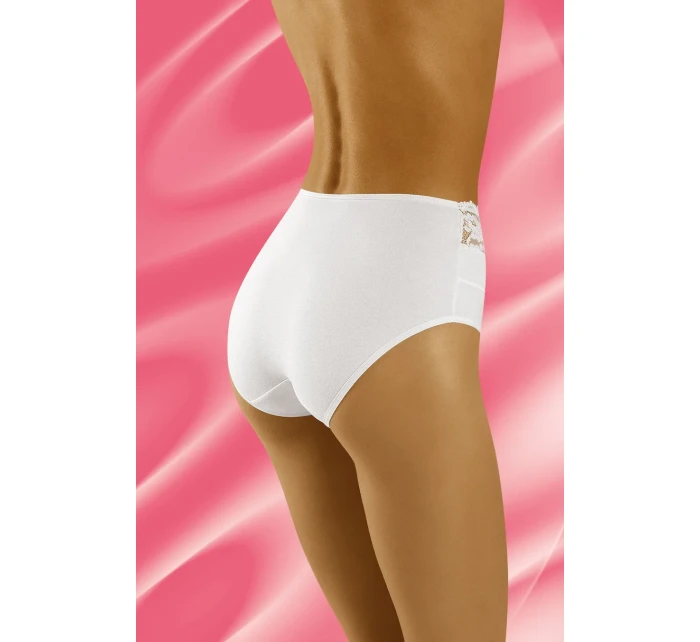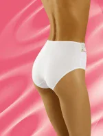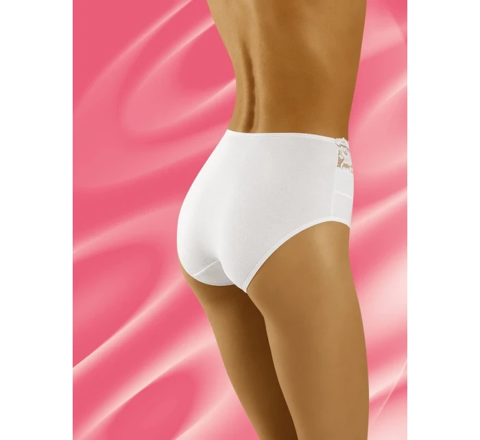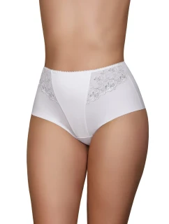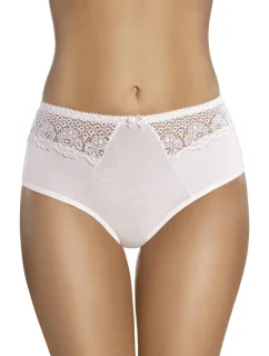 Vysoké, bavlněné kalhotky. V horní části zdobené krajkou. Pozadí hladké.