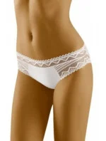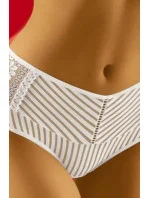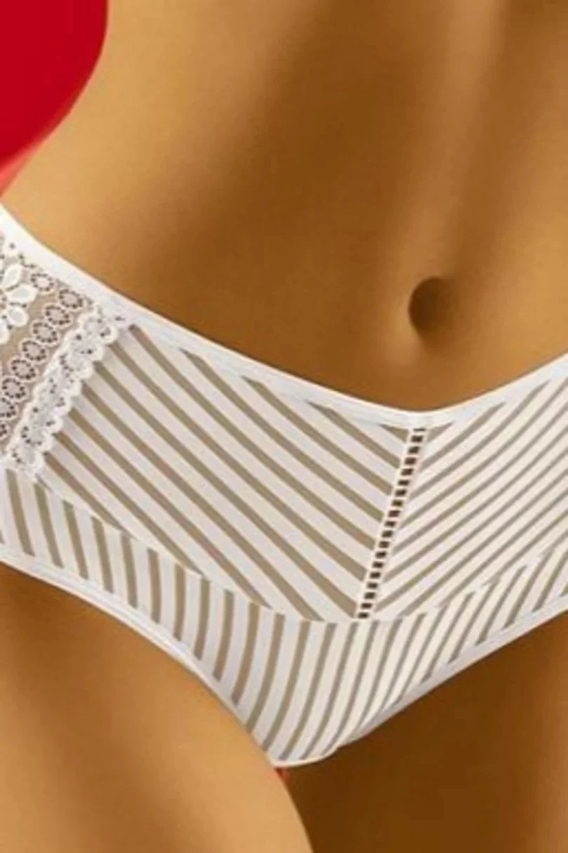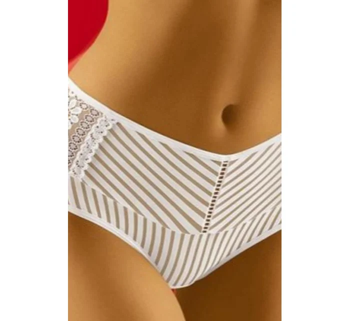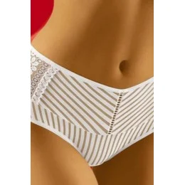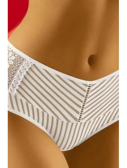Kalhotky jsou vyrobené z látky s proužky. Přední díl modelu zdobí krajkové vsadky. Model je vhodný pro ženy s plnějšími tvary.
