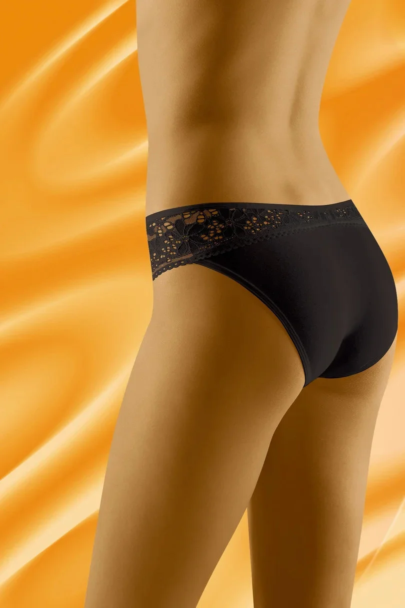 V horní části kalhotek je vsadka z krajky s květinovým motivem.