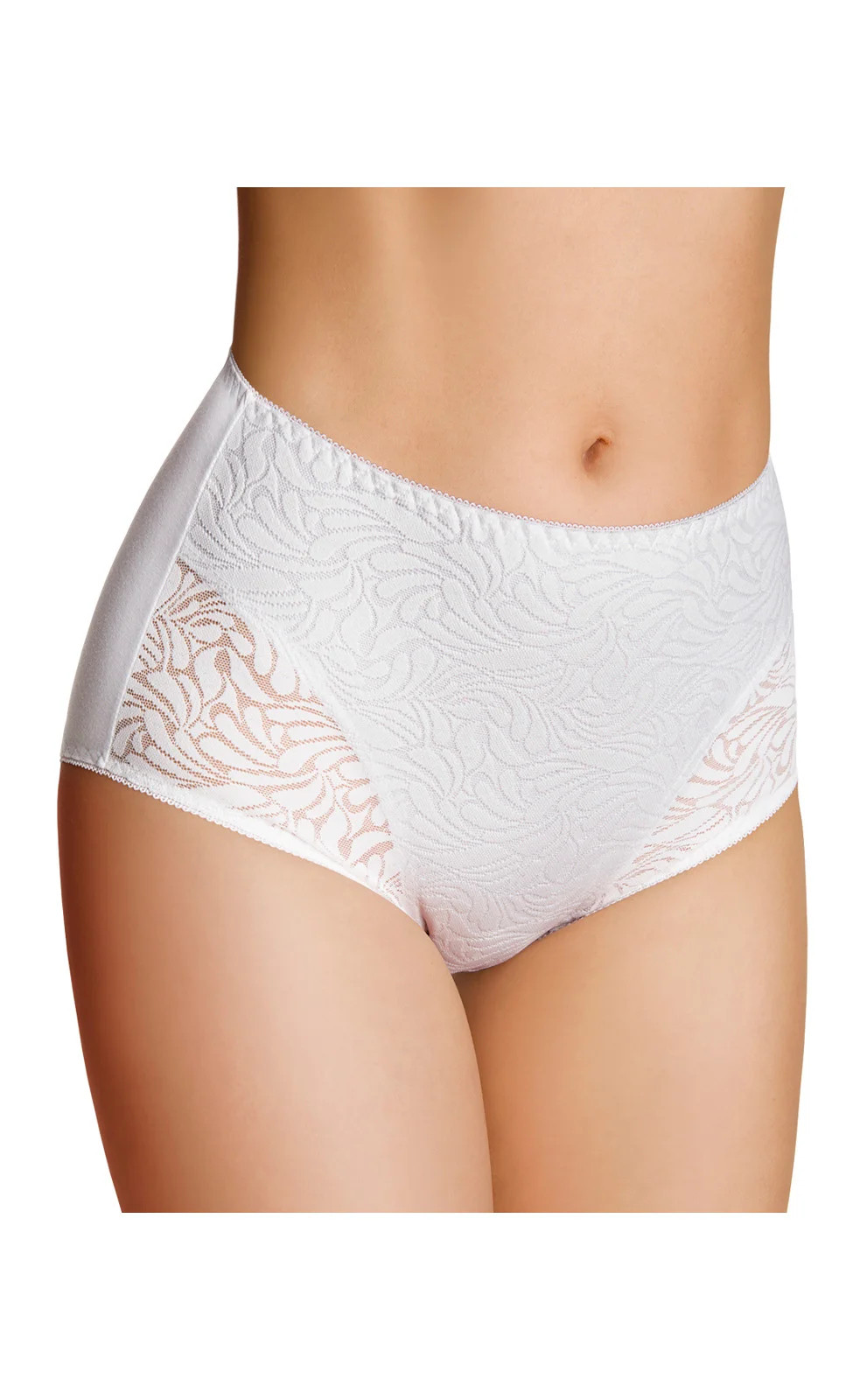 Vrchní část modelu tvoří pružná ažurová krajka. Přední díl modelu je z vnitřní strany podšitý bavlnou. Spodní část kalhotek je ušitá z jemné bavlny.