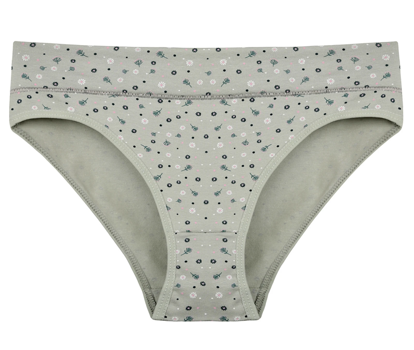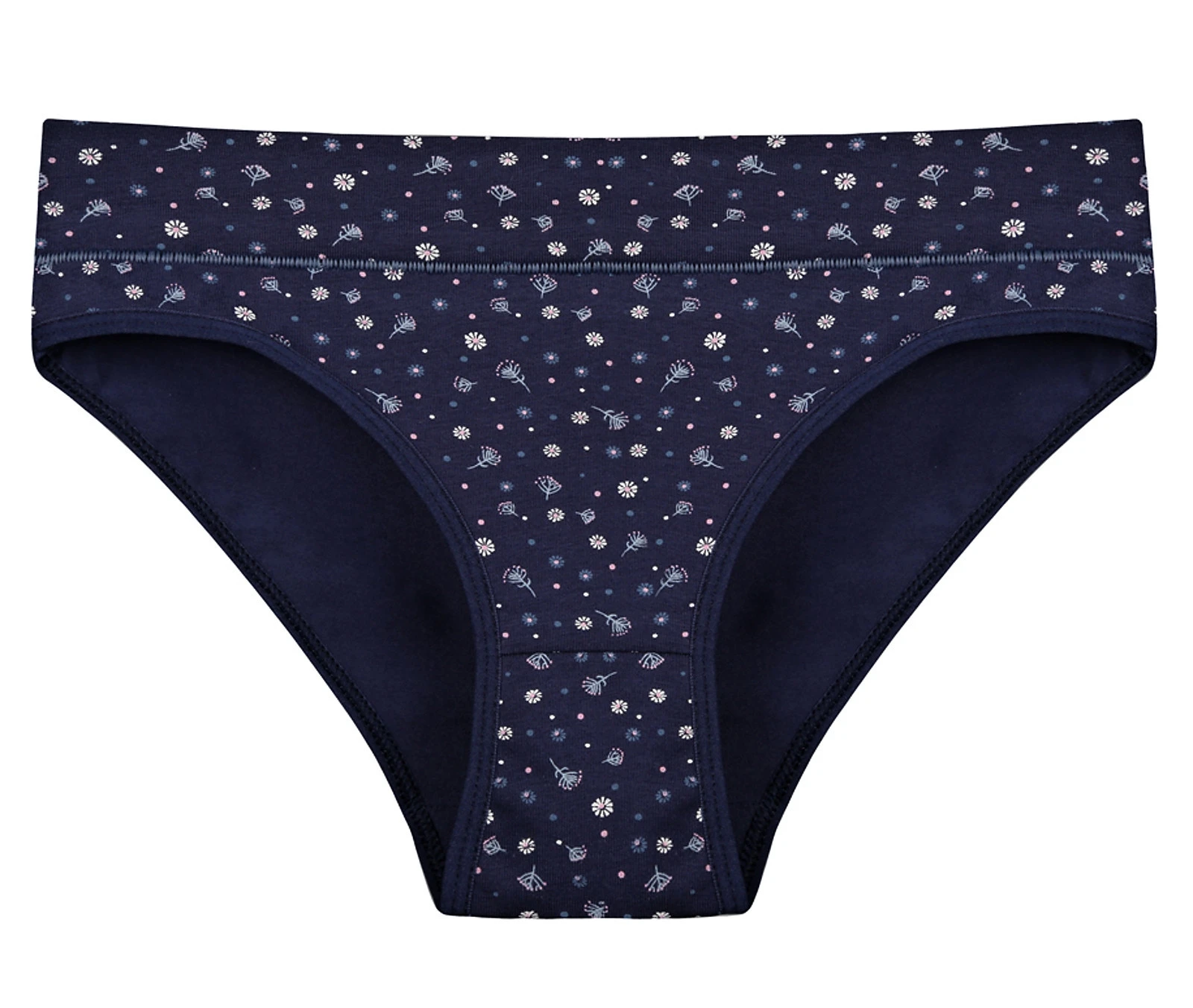 Dámské kalhotky Emma. Slušivé klasické kalhotky jsou pohodlným typem spodního prádla pro všechny příležitosti. Jsou zdobené drobnými květy. Obzvláště oceníte materiálové složení - 95% bavlna a 5% elasten. Použitý materiál je příjemný a poddajný na dotek.