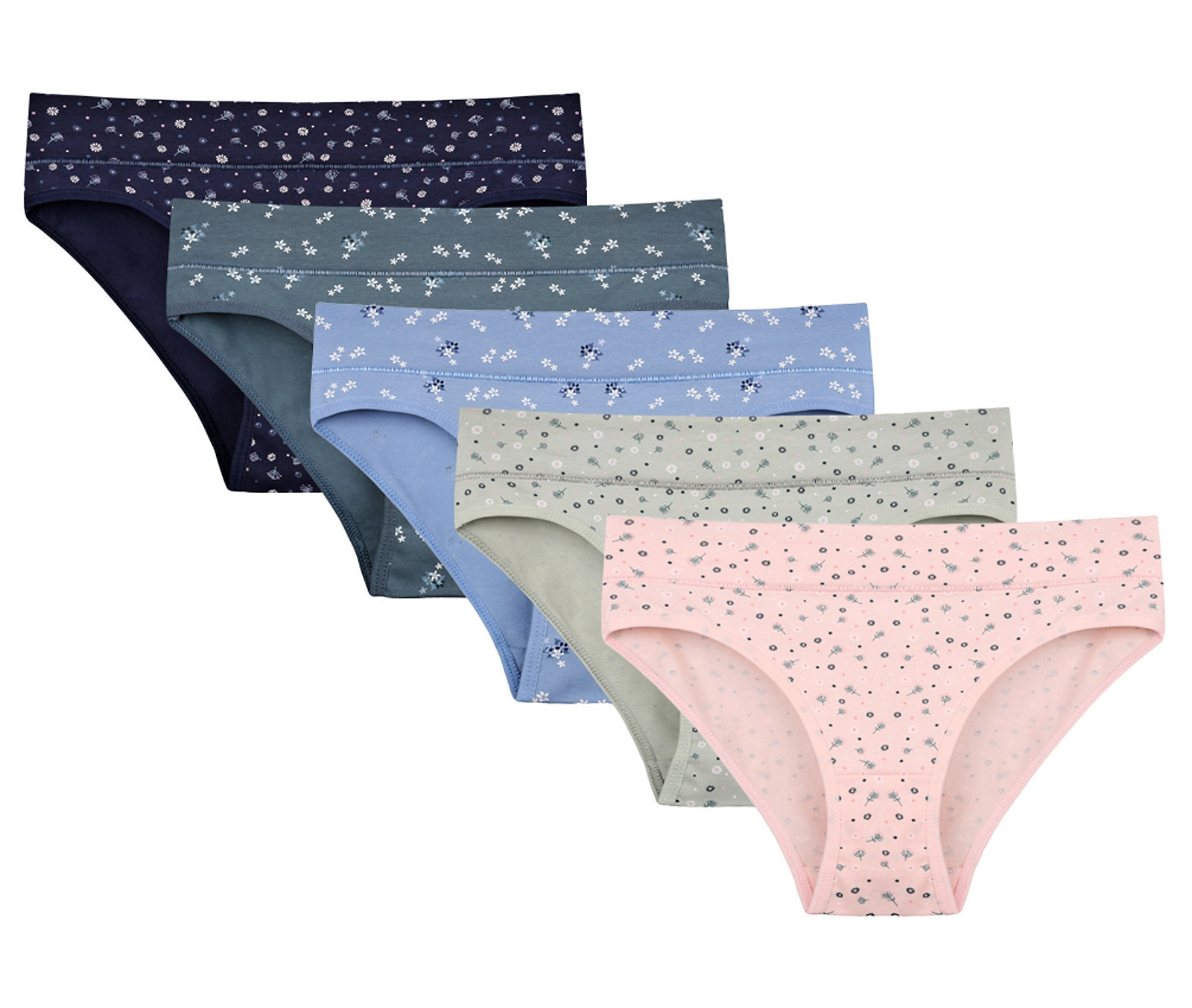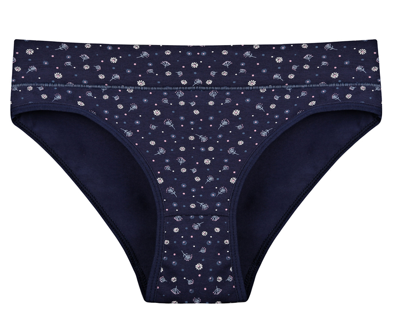 Dámské bavlněné kalhotky Emma. Slušivé klasické kalhotky jsou pohodlným typem spodního prádla pro všechny příležitosti. Jsou zdobené drobnými květy. Obzvláště oceníte materiálové složení - 95% bavlna a 5% elasten. Použitý materiál je příjemný a poddajný na dotek.