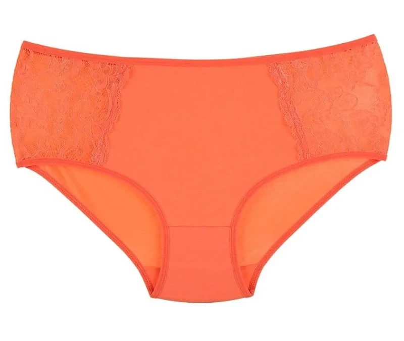 Dámské kalhotky Erika. Dámské kalhoty klasického střihu s krajkovou ozdobou na bocích. Použitý materiál je jemný a poddajný na dotek.