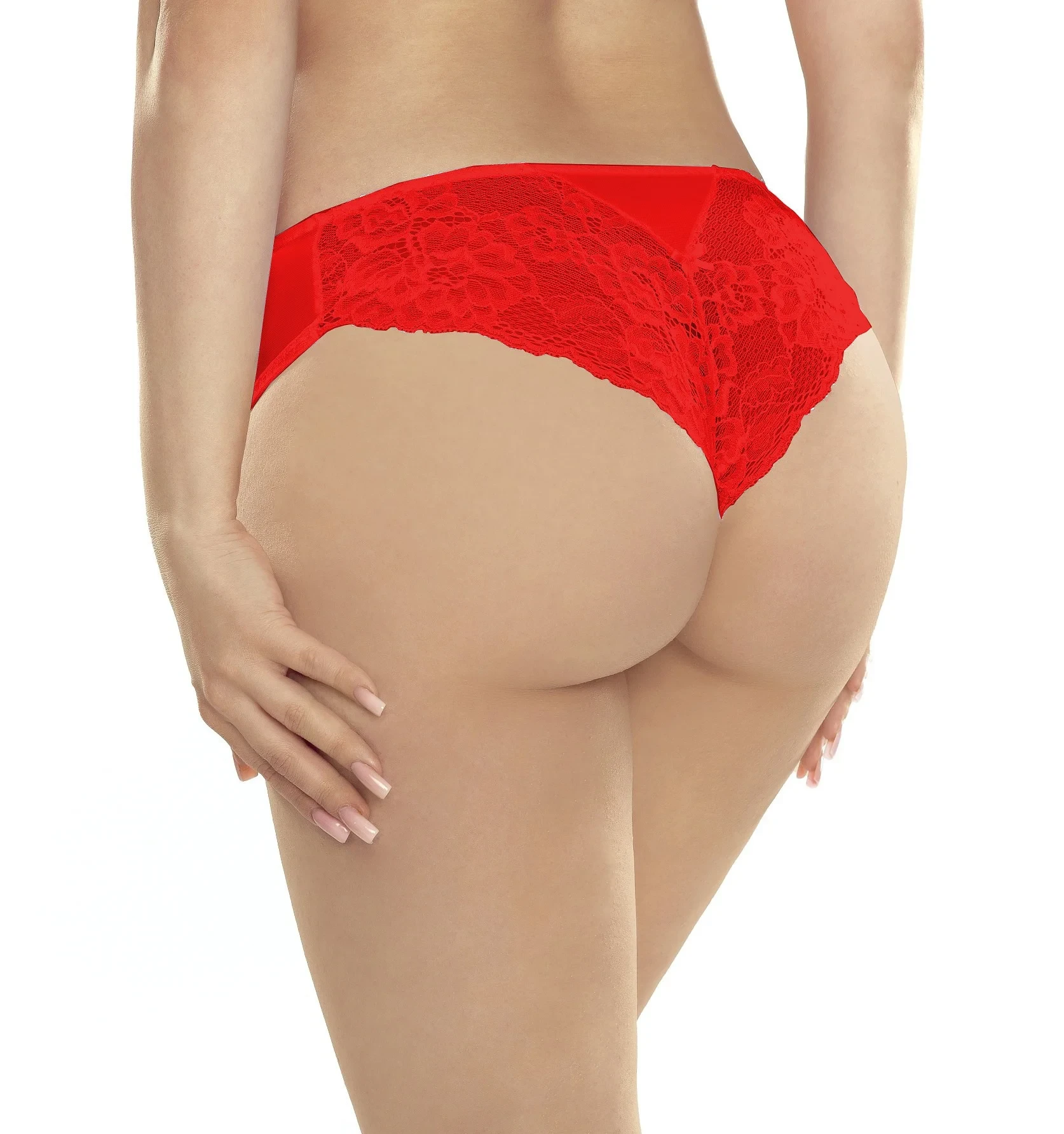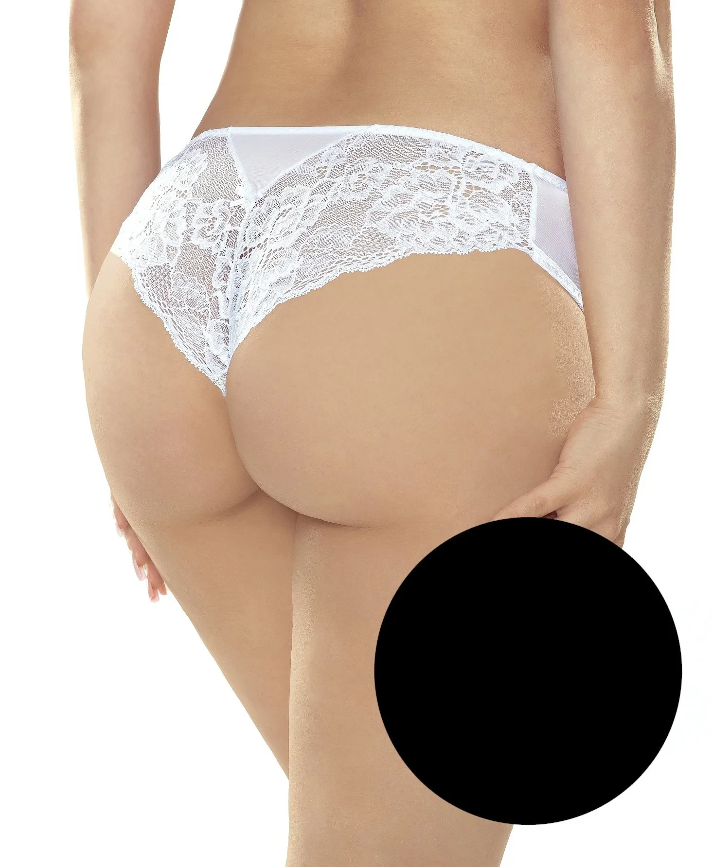 Kalhotky jsou vyrobené ze síťoviny a květované krajky. Přední díl modelu je podšitý bavlnou. Zadní díl kalhotek je krajkový.