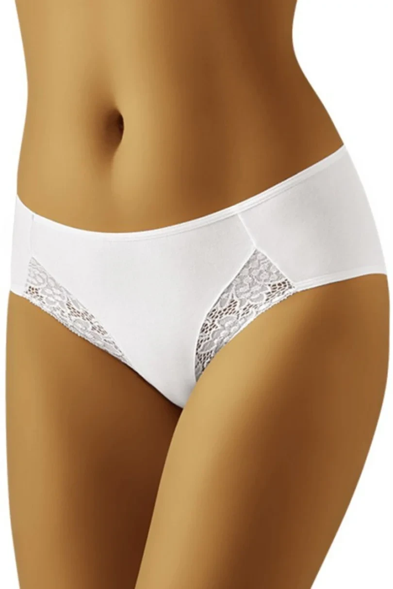 Klasický střih, z hladkého bavlněného úpletu, mírně širší boky, krajkové vsadky na bocích, hladká záda.
