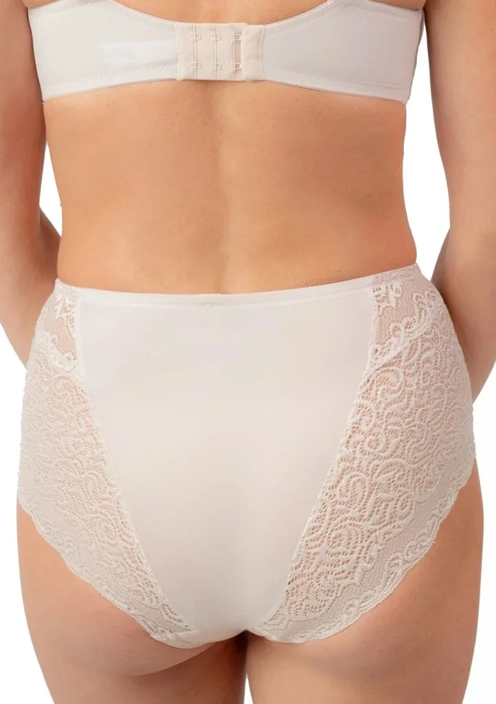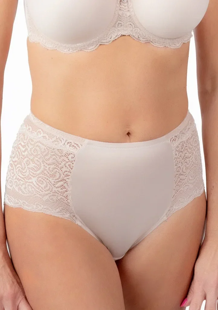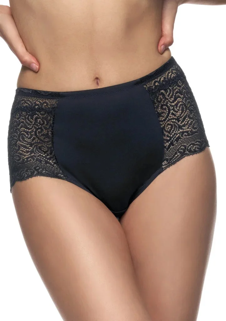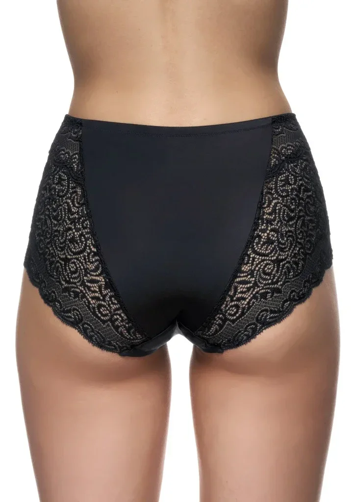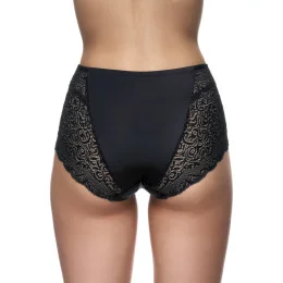 Dámské vyšší kalhotky značky Fantasy. Kalhotky mají vyšší pas a krásně vytvarují postavu pod oblečením. Mají mírně stahovací efekt. Přední a zadní část kalhotek je ušitá z hladké látky - mikrovlákna. Nohavičky kalhotek na bocích lemuje pružná ozdobná krajka. Uprostřed je všitý bavlněný klínek pro pohodlné nošení.