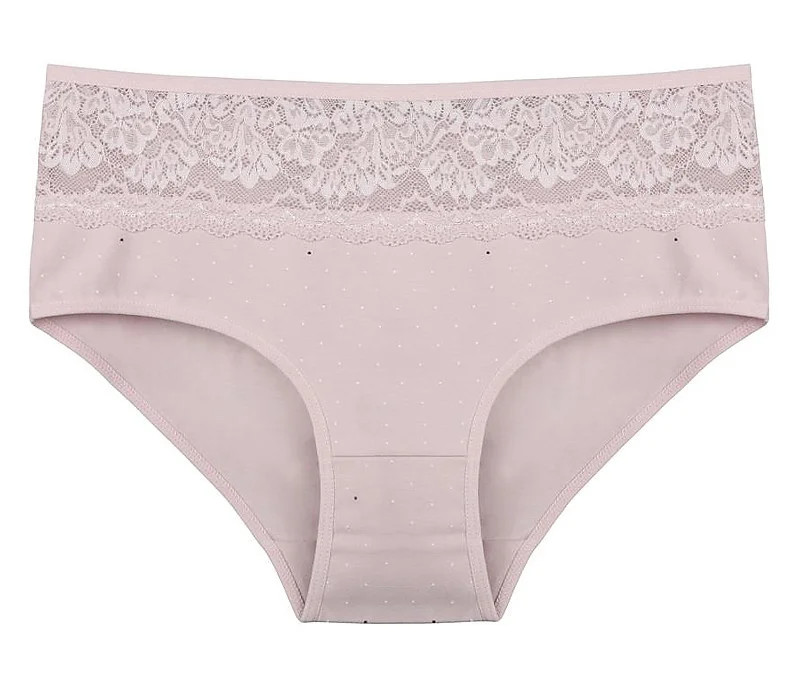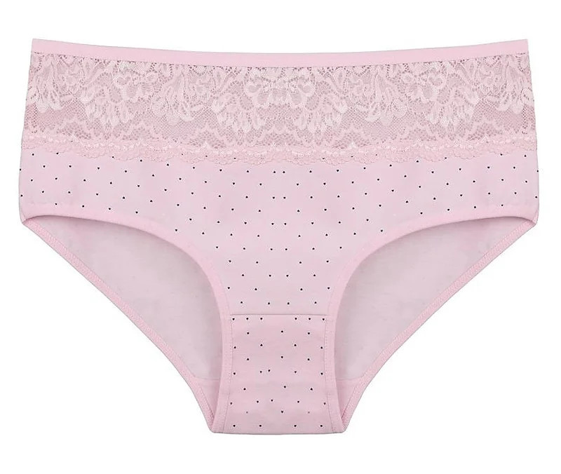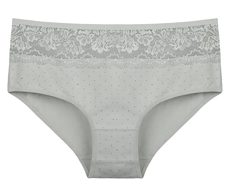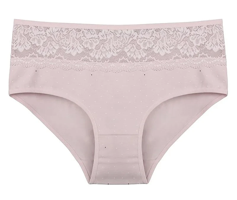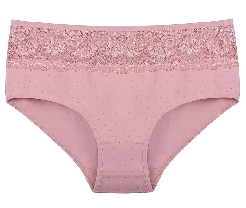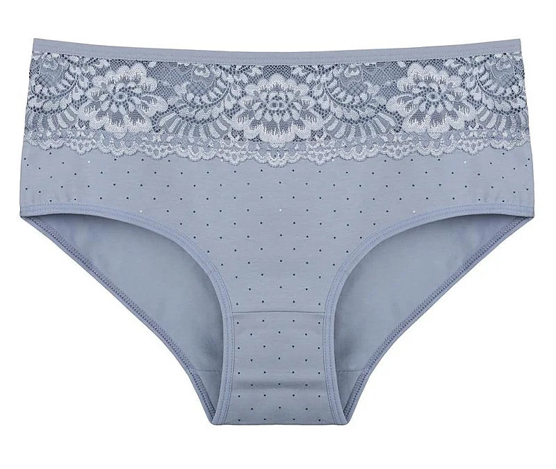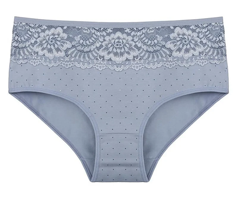 Dámské kalhotky Filipa. Dámské kalhotky klasického střihu. Kalhotky jsou ozdobeny drobným potiskem a na předním díle krajkou. Použitý materiál je příjemný a poddajný na dotek.
