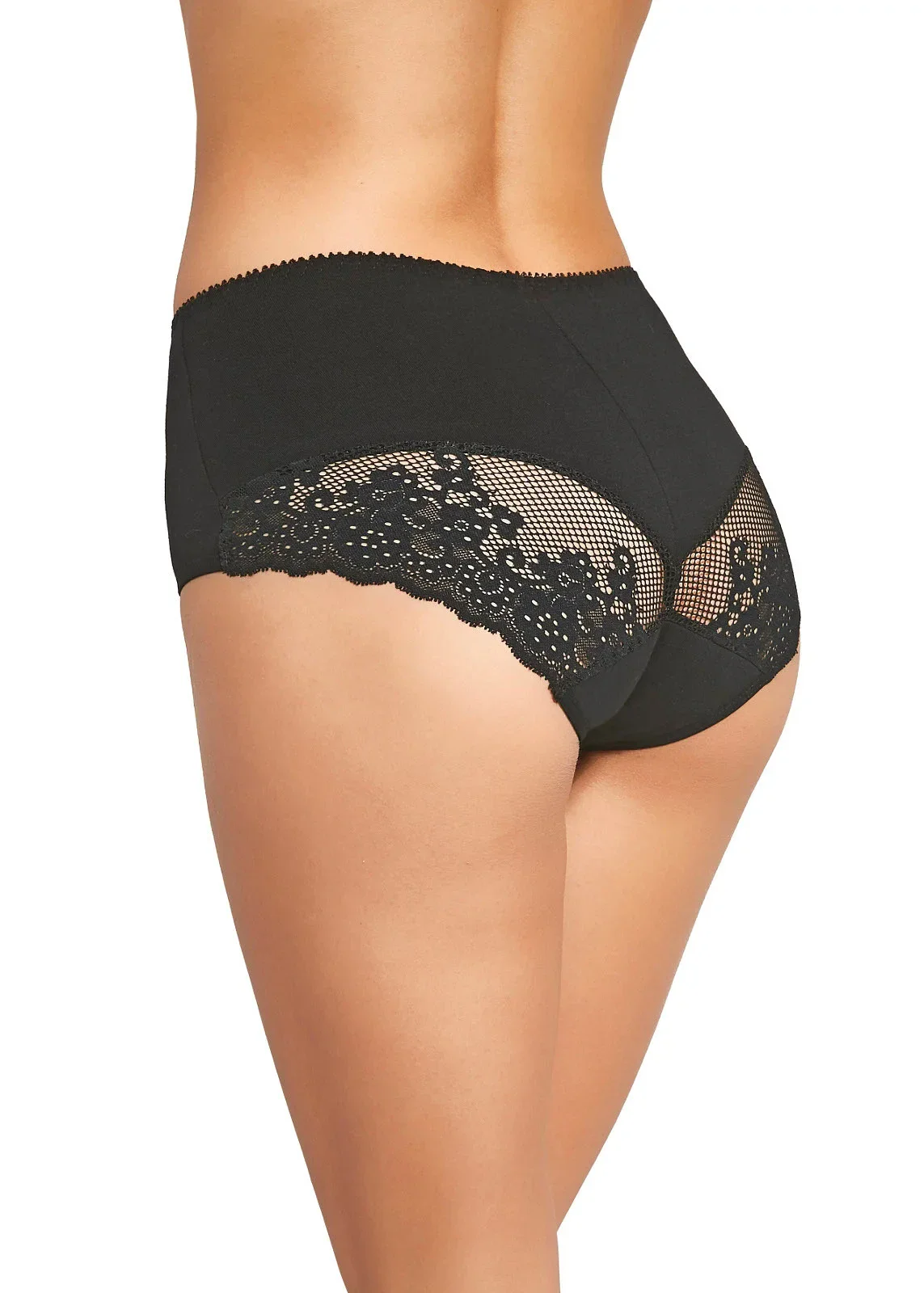 Kalhotky jsou na bocích plnější. Zadní díl modelu zdobí efektní ažurová krajka.