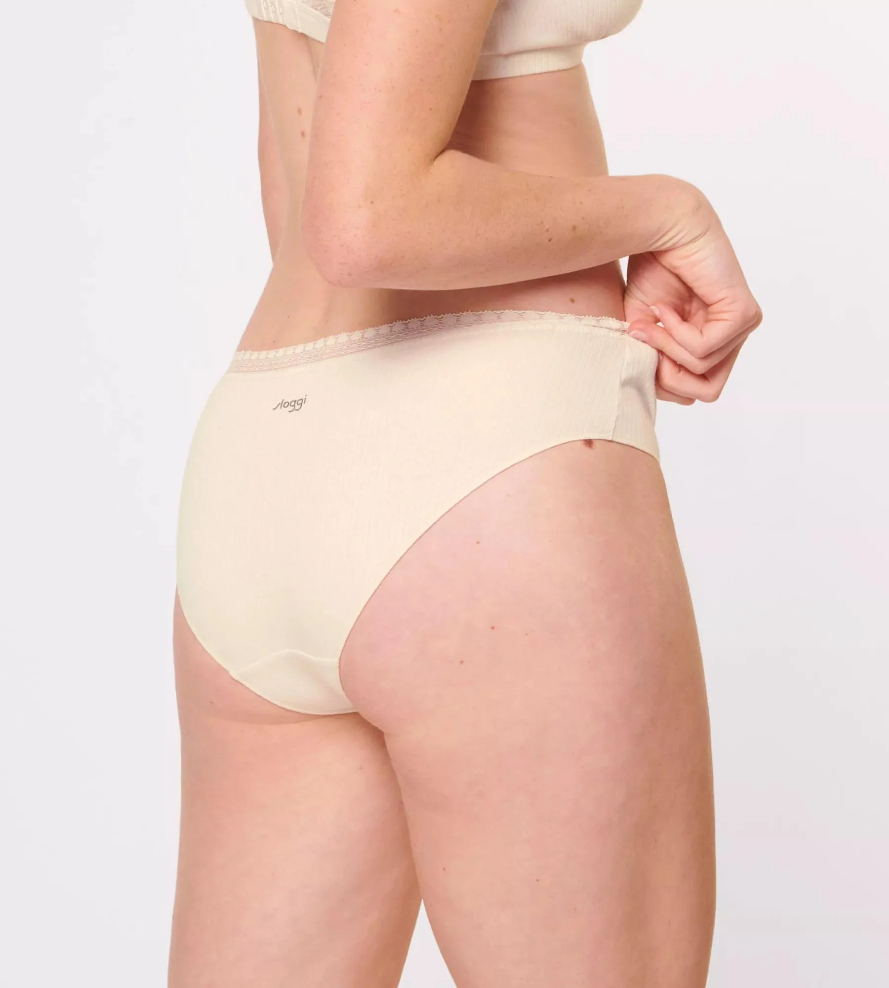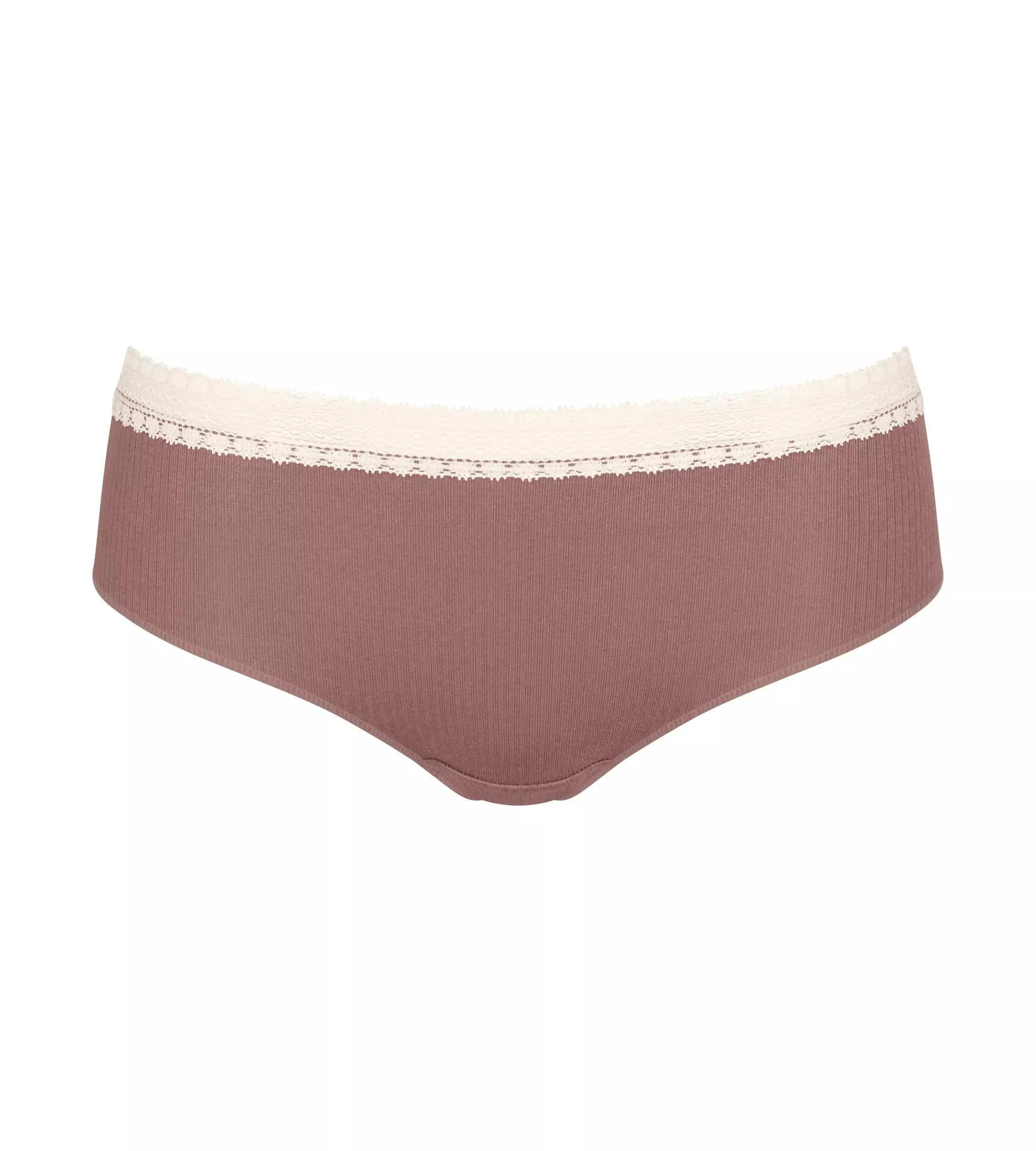 Super útulné, super stylové! Tyto bokové kalhotky GO Ribbed, vyrobené z měkké žebrované organické bavlny s jemnou krajkovou pasovkou, jsou ideální pro každý den.