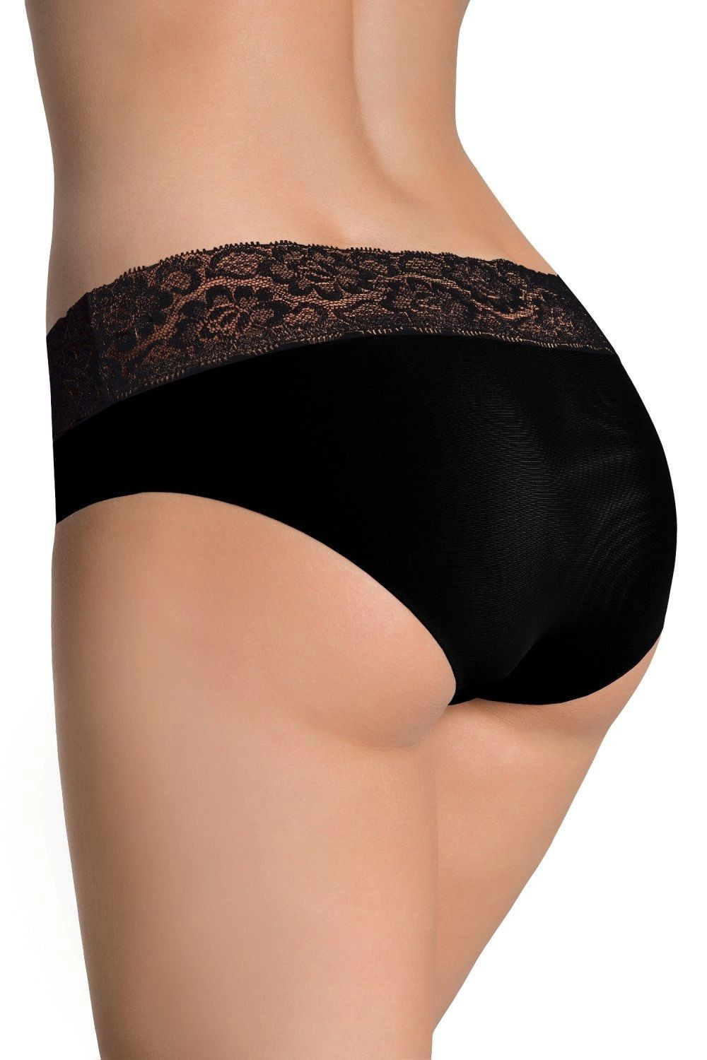 Dámské kalhotky Hipster black JULIMEX - černá barva - klasický střih - zdobené krajkou s květinovým vzorem - bezešvé - bavlněný klín